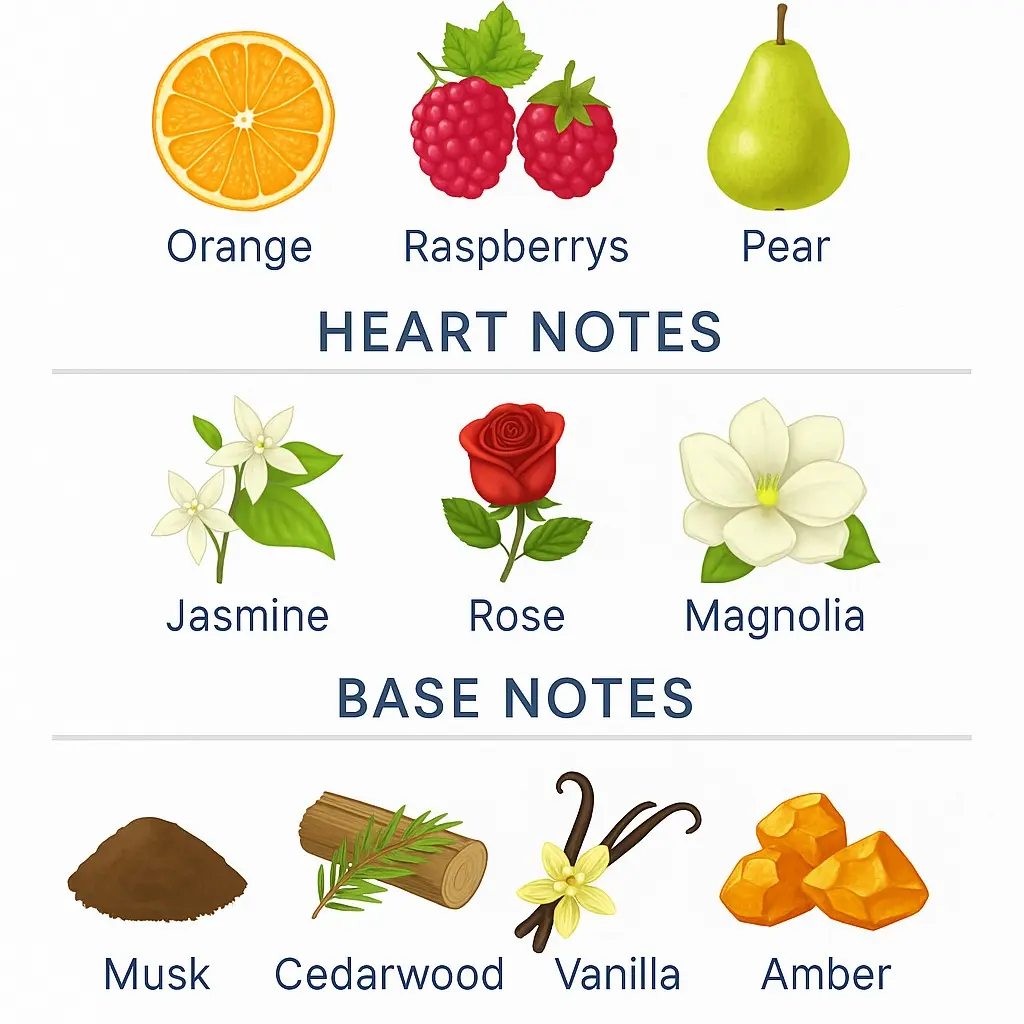 The set opens with vibrant mandarin orange and tangy cranberry, balanced by delicate violet and peony. The heart reveals the elegant orchid and freesia, creating a refreshing floral bouquet. Warm undertones of vanilla, white amber, and white woods settle the scent, offering a luxurious embrace. Let your senses be transported to a world of floral splendor.