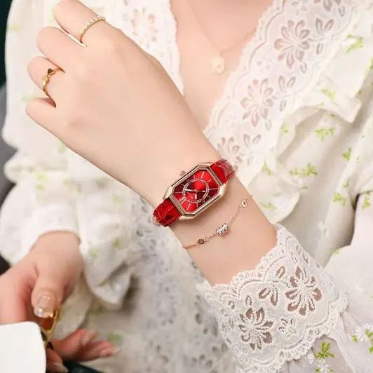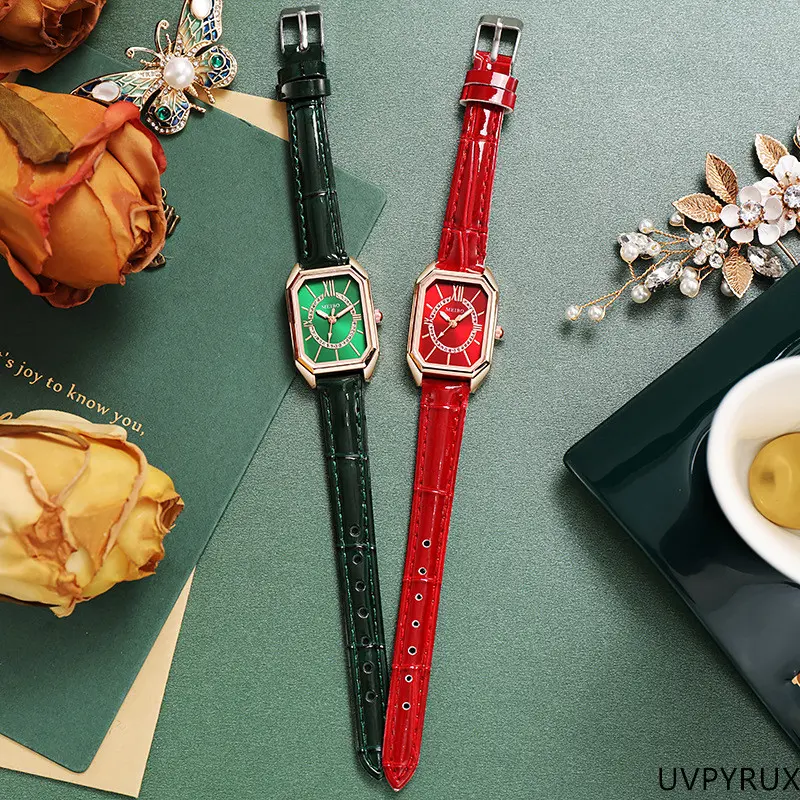5. 2026 Retro Square Women's Watch | Green & Red Leather Strap, Vintage Style