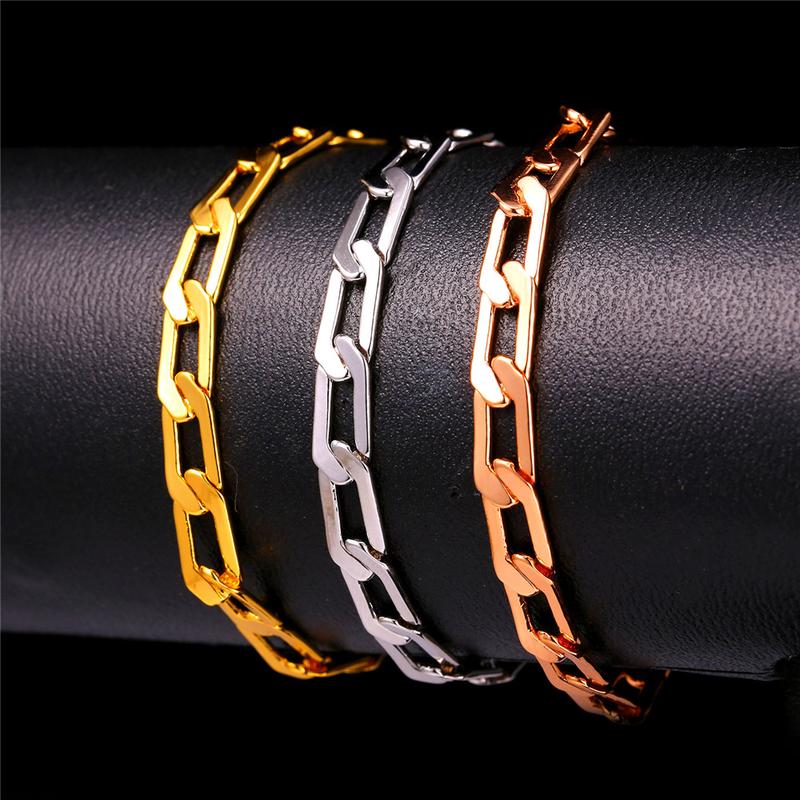 FindChic Cuban Chain Bracelets Slim Cuban Chain Bracelet Elegant Rose Golden For Women Men Girlfriend Boyfriend