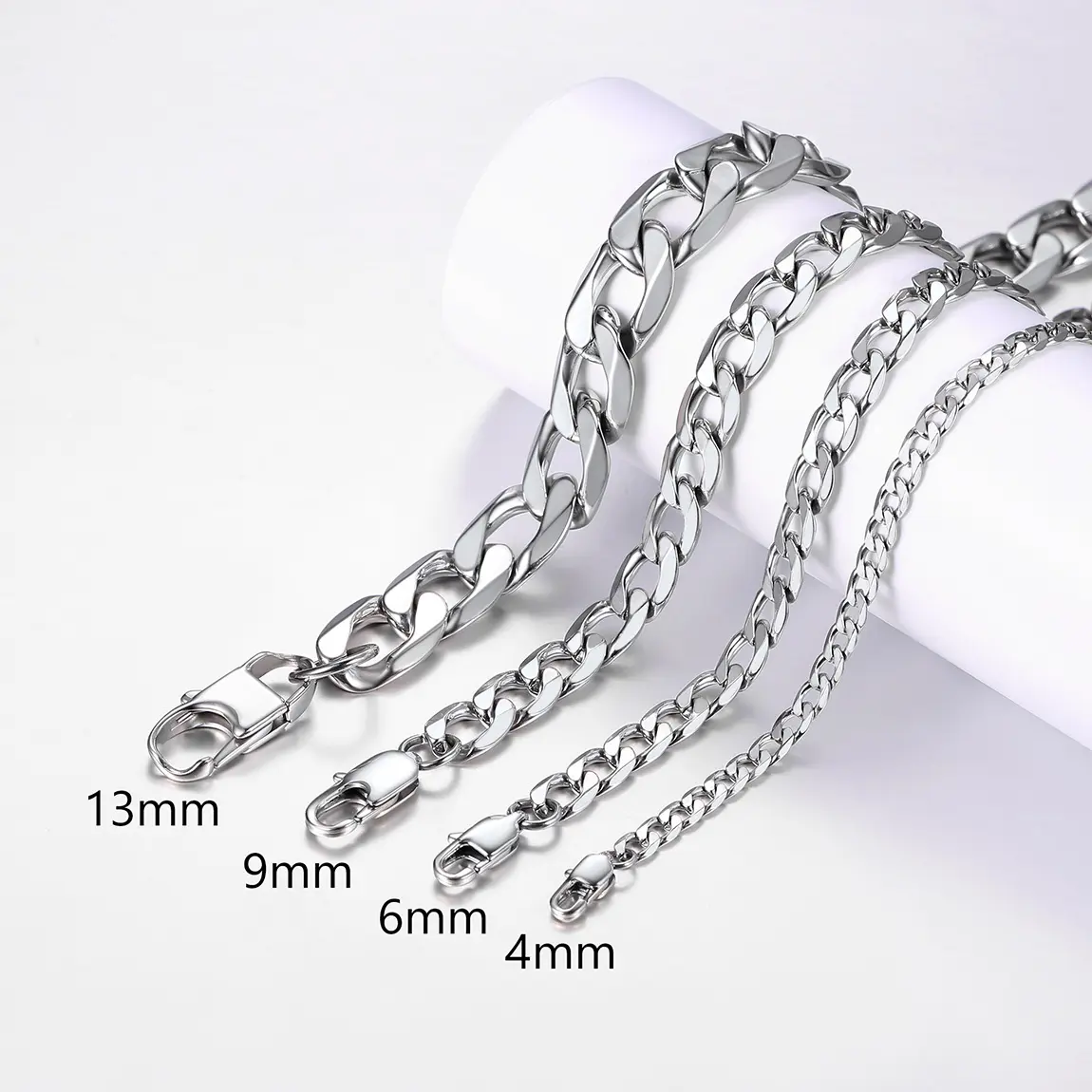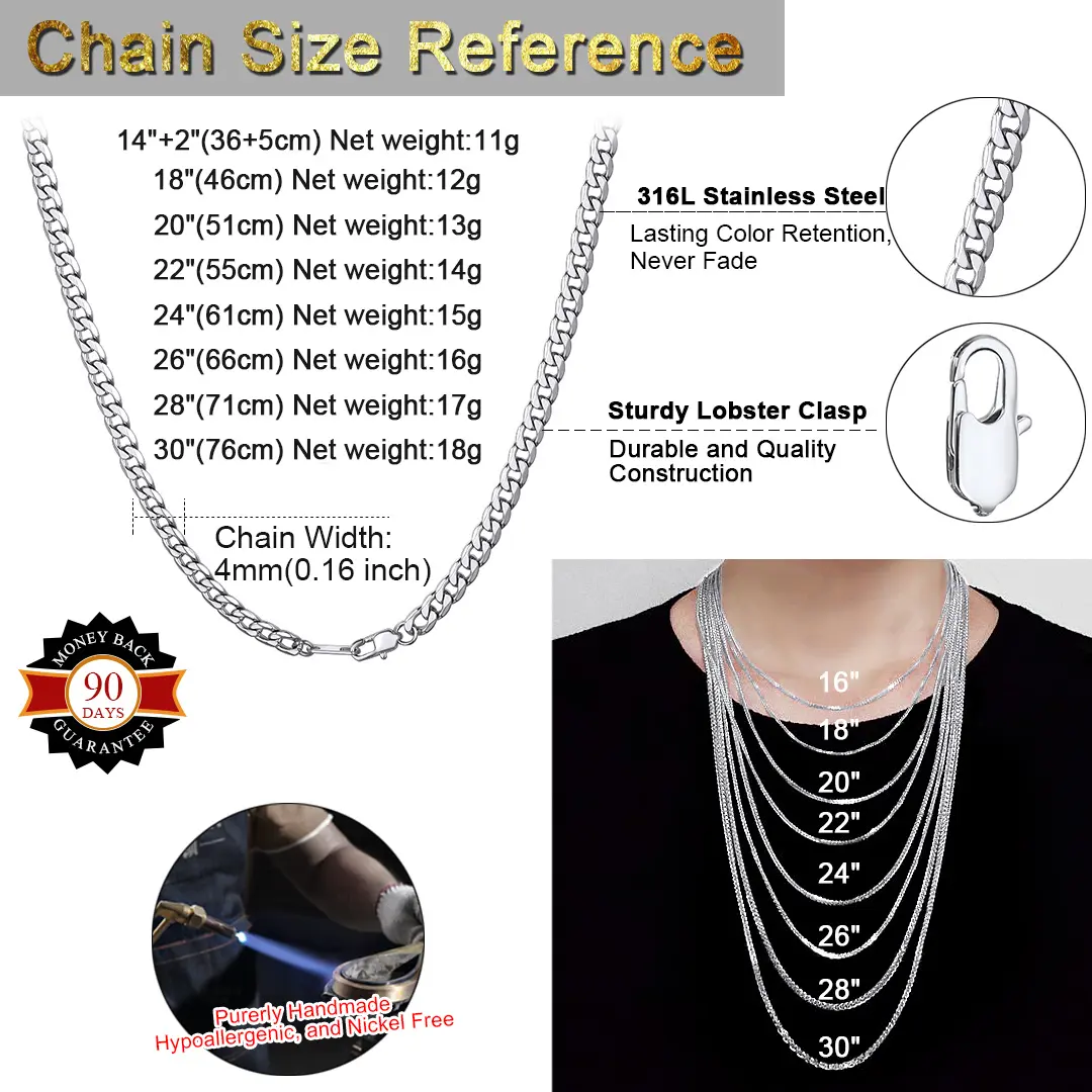 Upgrade your style with our Cuban Chain Necklace, available in widths of 4mm, 6mm, 9mm, or 13mm. Crafted with precision and elegance, this necklace features a classic Cuban chain design that adds a touch of sophistication to any outfit. Choose the width that suits your style and make a statement with this versatile accessory.