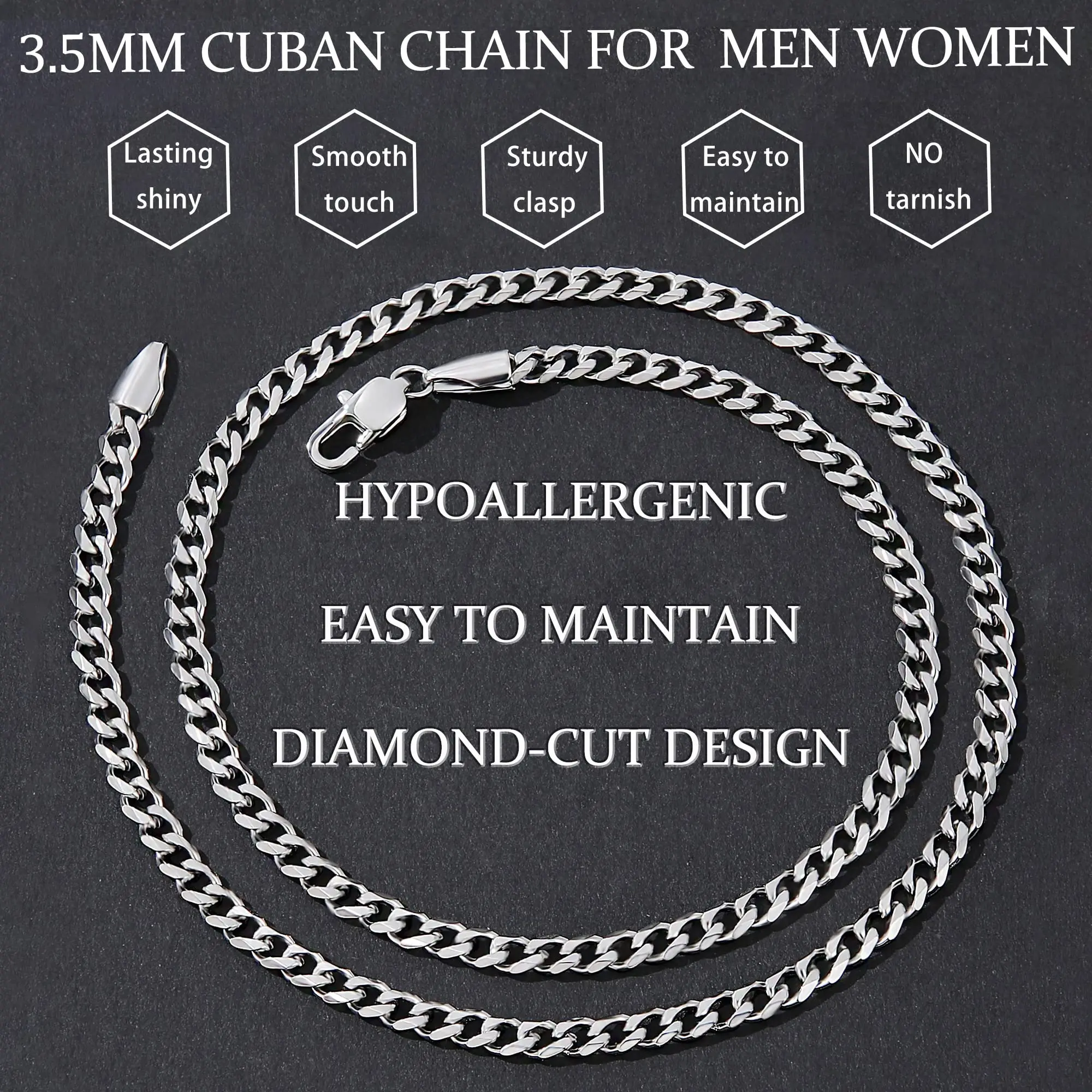 3.5mm Cuban Chains for Men Mens Necklace Chains Stainless Steel Cuban Link Chain Necklace for Men and Boys