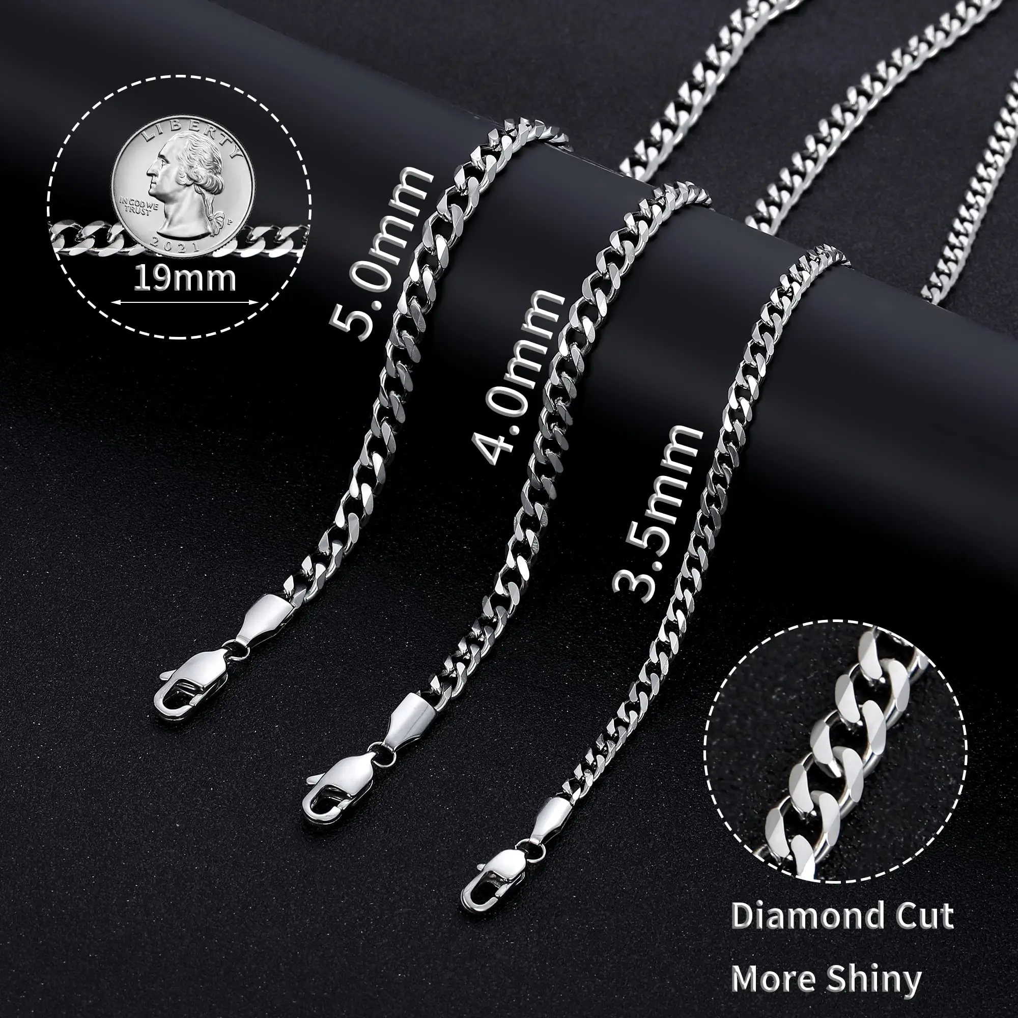 ·DIAMOND CUT DESIGN: Diamond-cut beveled links are more reflective and lustrous than standard men's chain necklaces. 3.5MM width stainless steel necklace for men, wear alone or with your favorite pendant for a personal statement