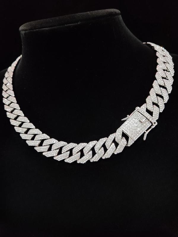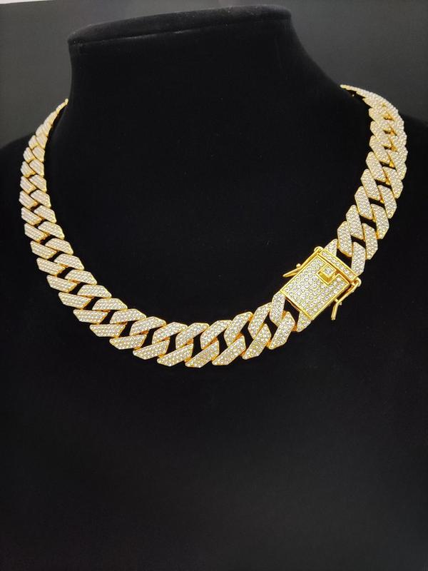 ăRhinestone Brillianceă: Adorned with carefully placed rhinestones, this Cuban chain necklace adds a sparkling touch to both men's and women's fashion.
