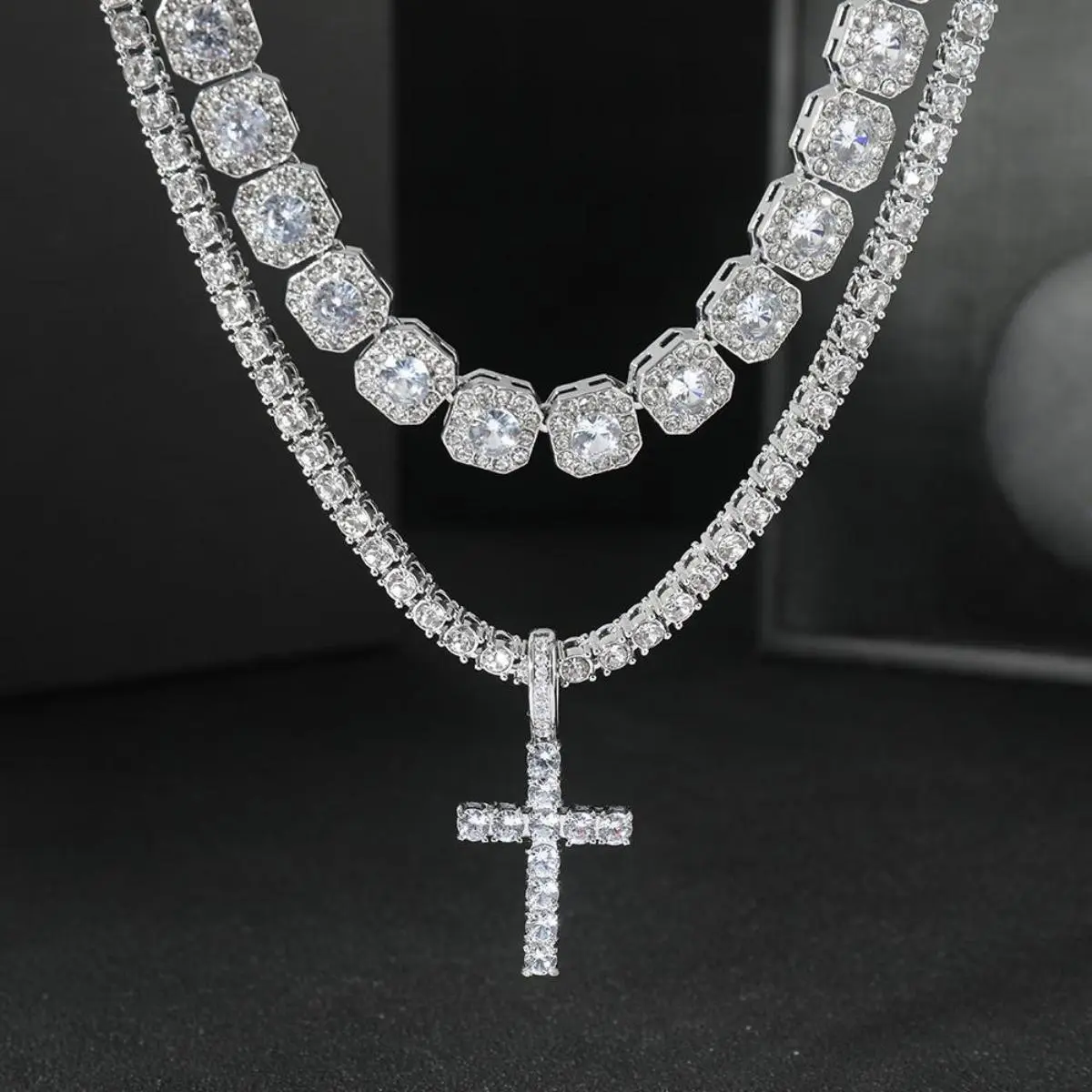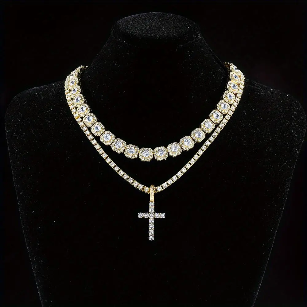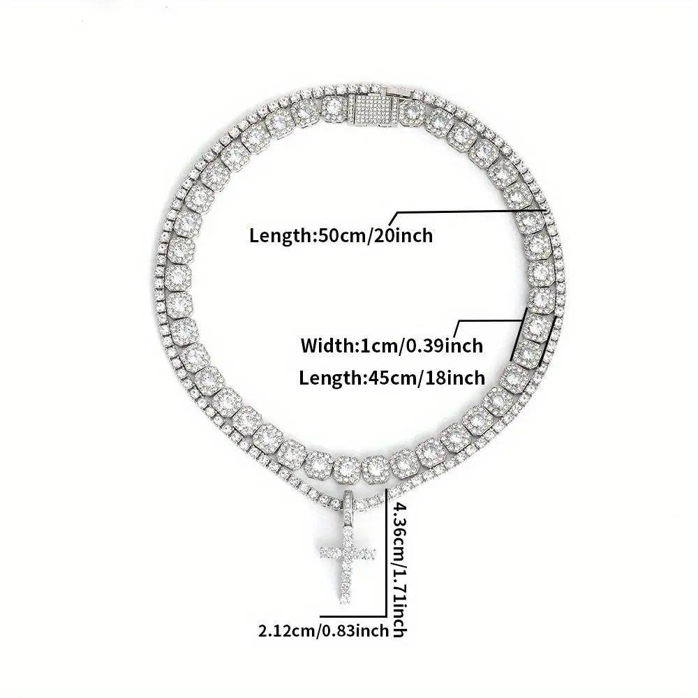 2pcs/set Stunning Hip Hop Cuban Chain Cross Design Pendant Necklace - Fashion Pendants for Women and Men with Jewelry Gift Idea