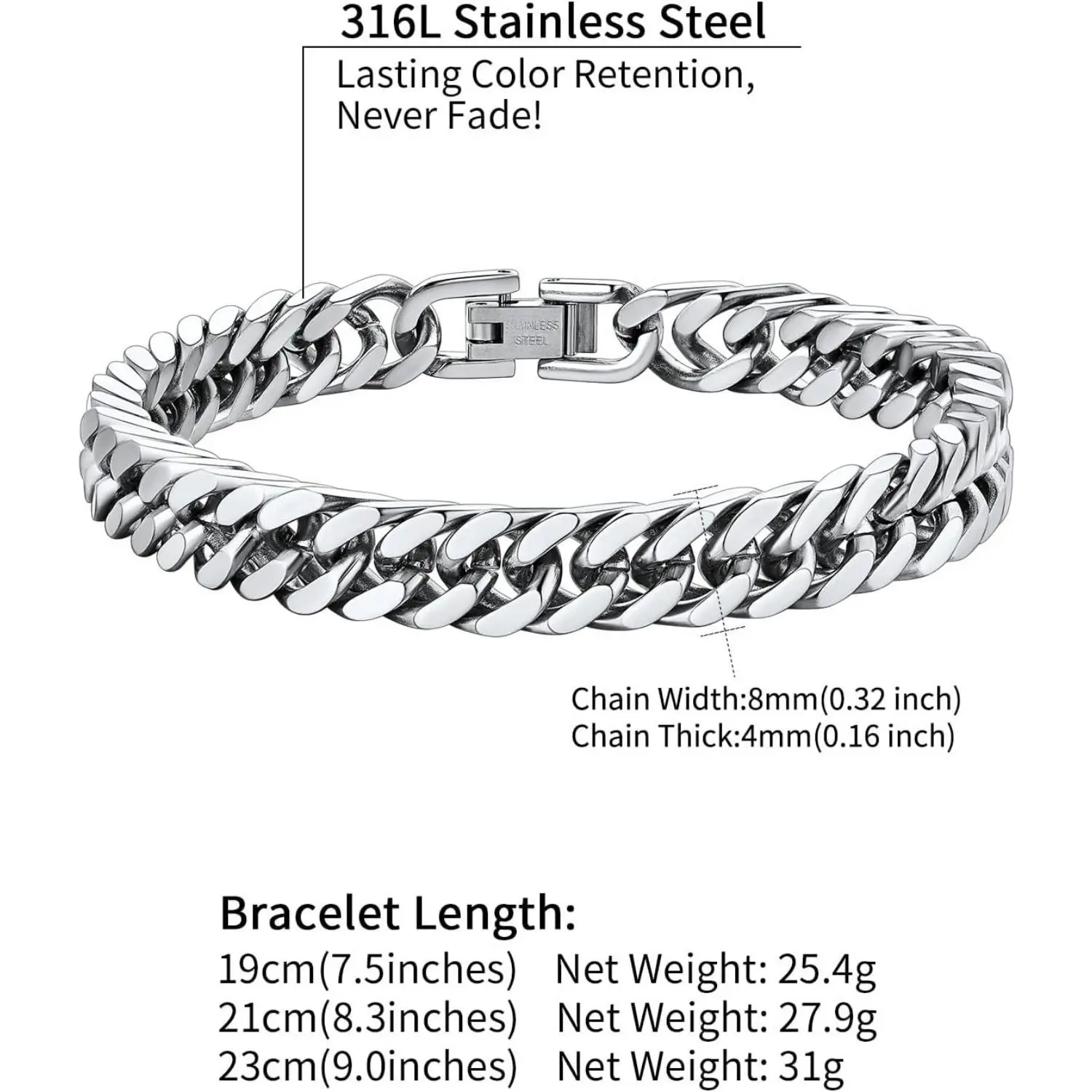 1. Durable Stainless Steel Curb Bracelet: Our bracelet for men and women is made with high-quality stainless steel, ensuring a long-lasting, durable and stylish of jewelry.