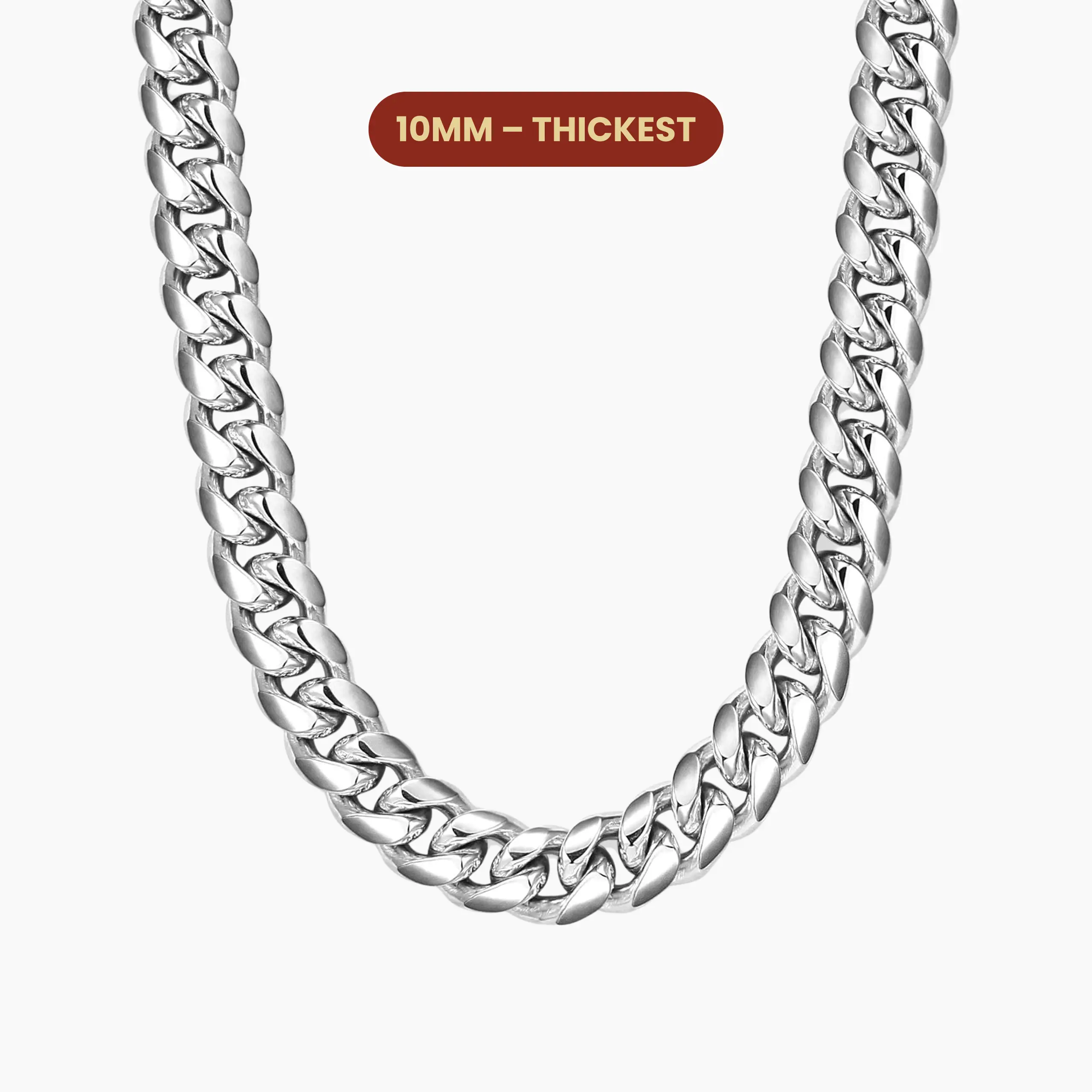 Love my new 10mm Cuban link in silver. Quality is perfection. Can't wait to order more. Fast shipping and great service.