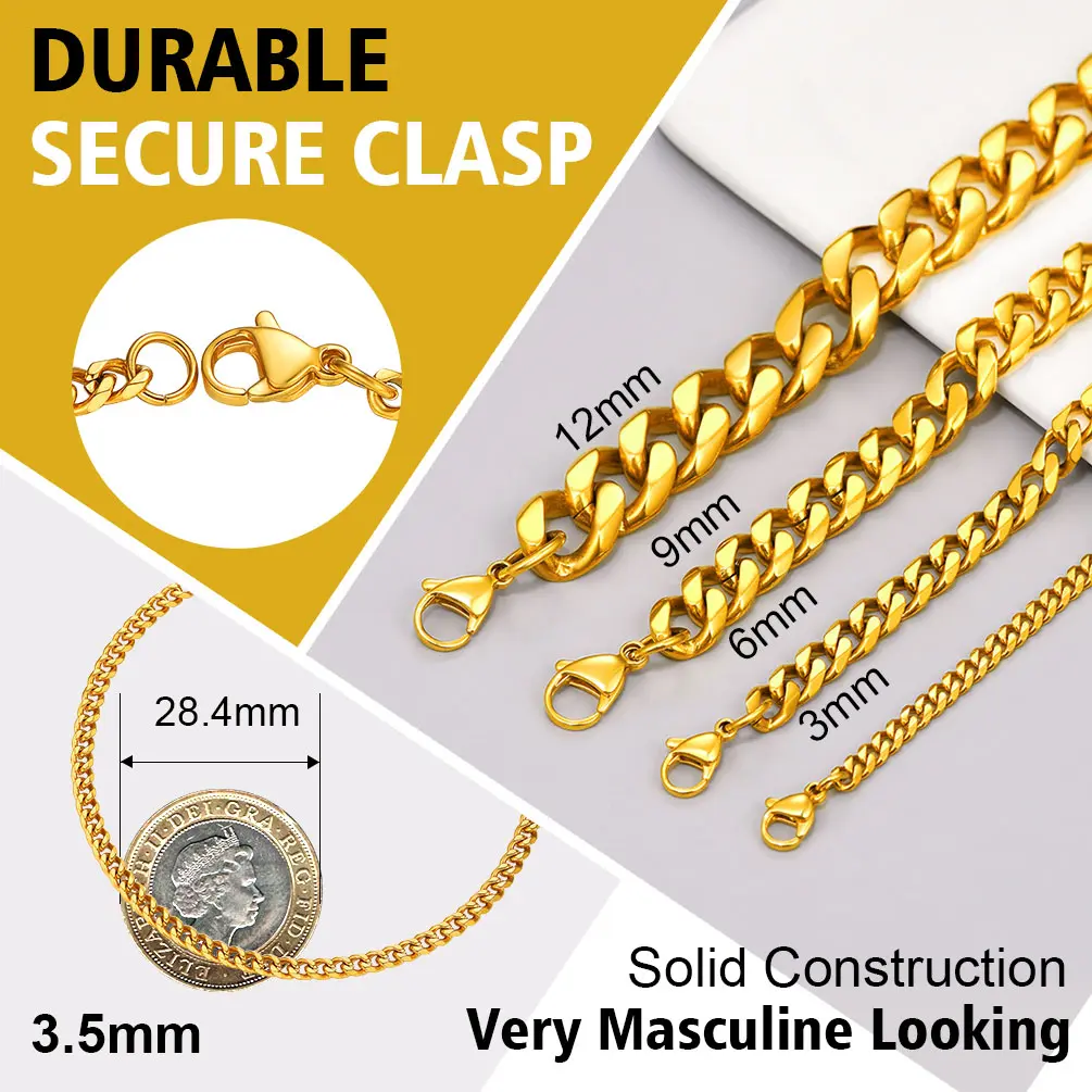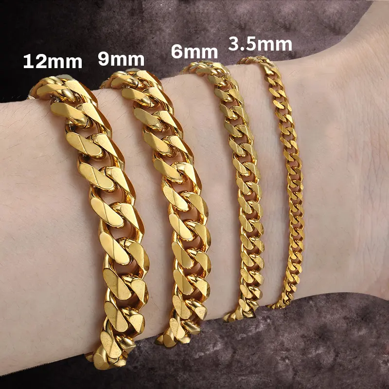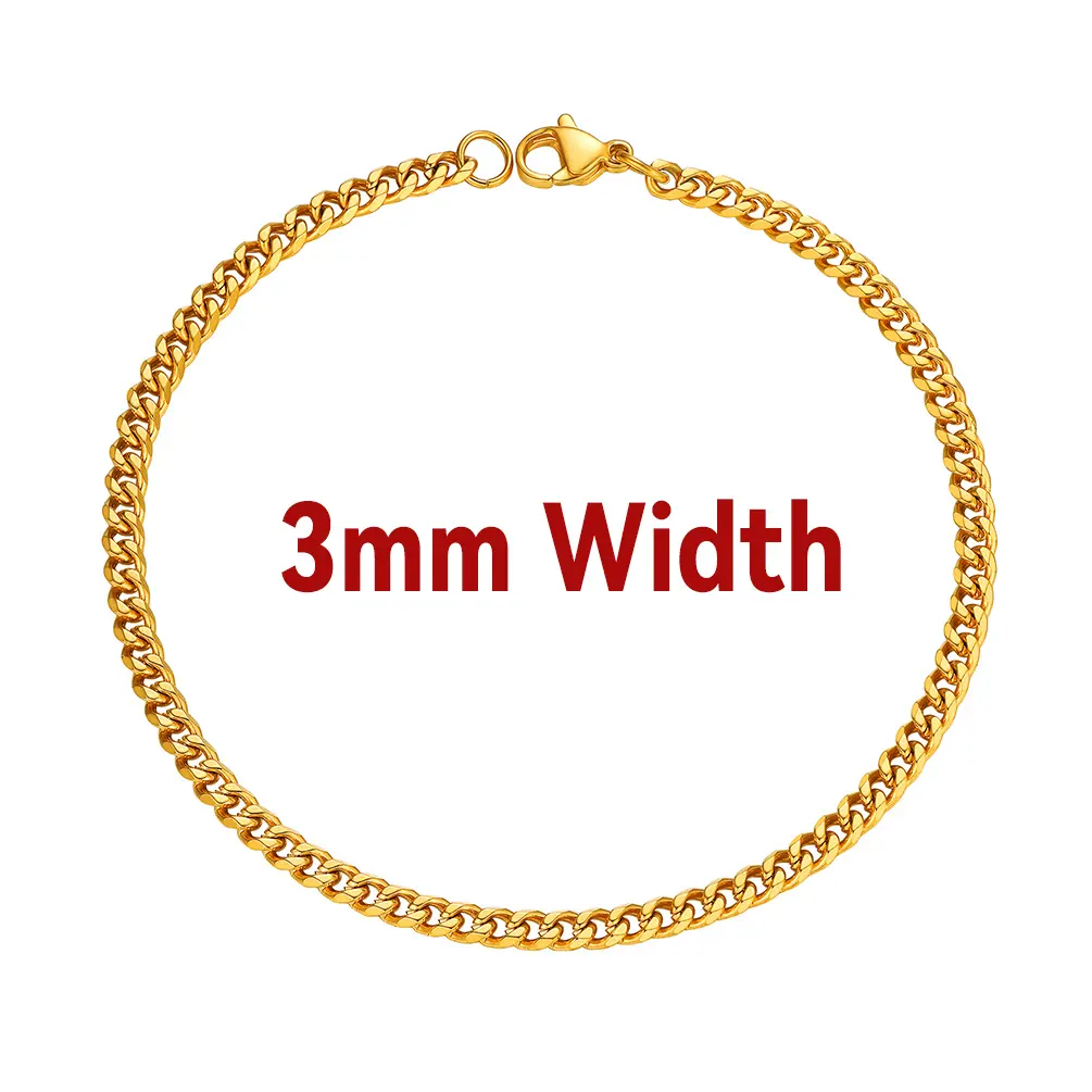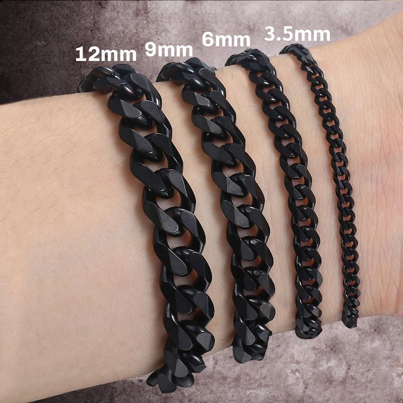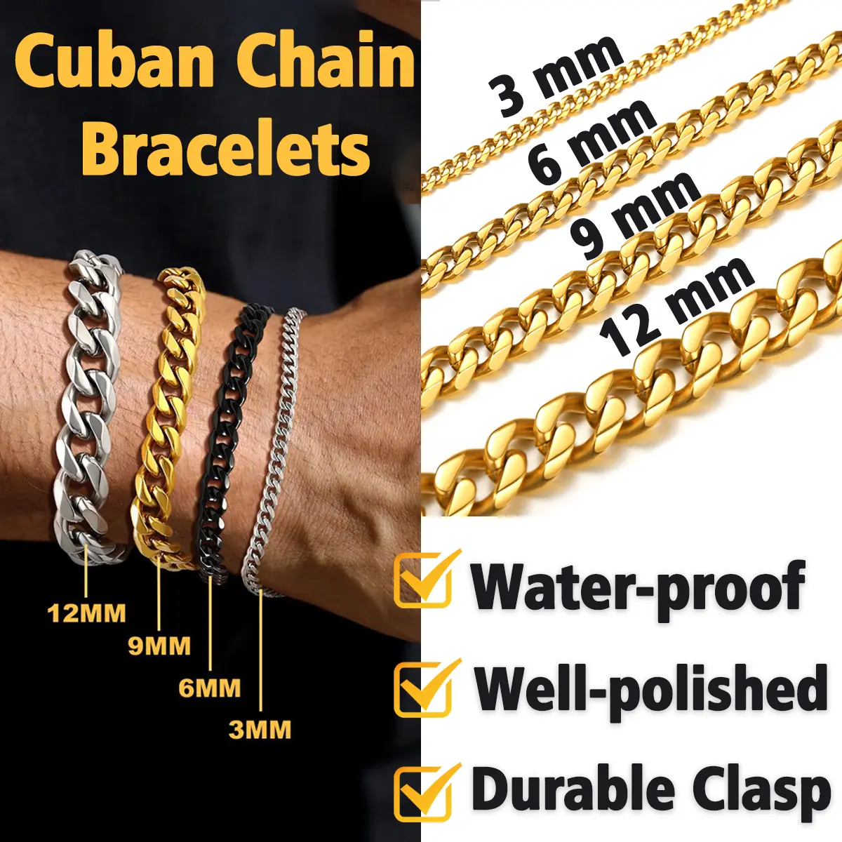 Classic Cuban chain bracelet available in various widths: 3mm, 6mm, 9mm, and 12mm. Crafted from high-quality stainless steel, it's durable, stylish, and perfect for any occasion. Choose the width that suits your style!