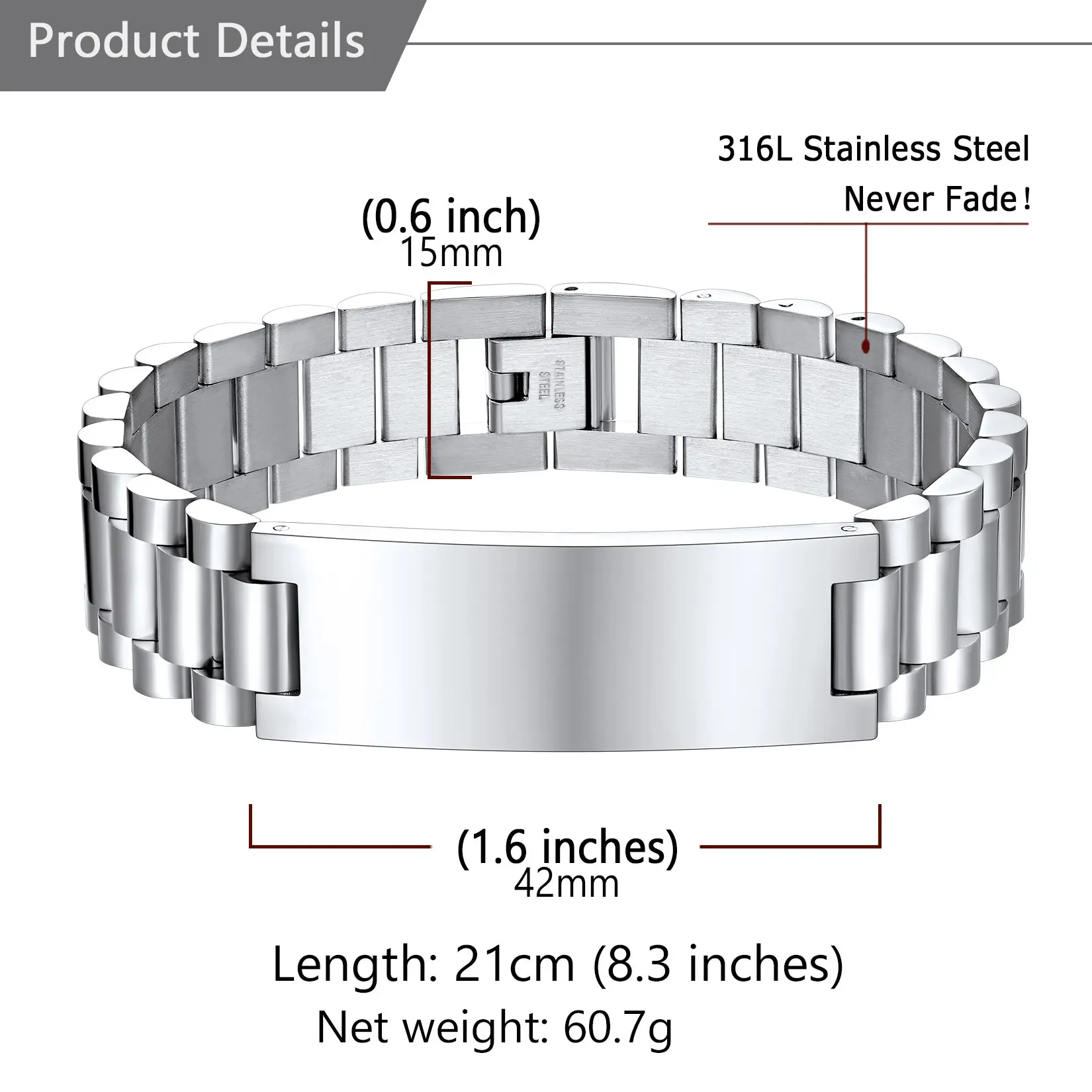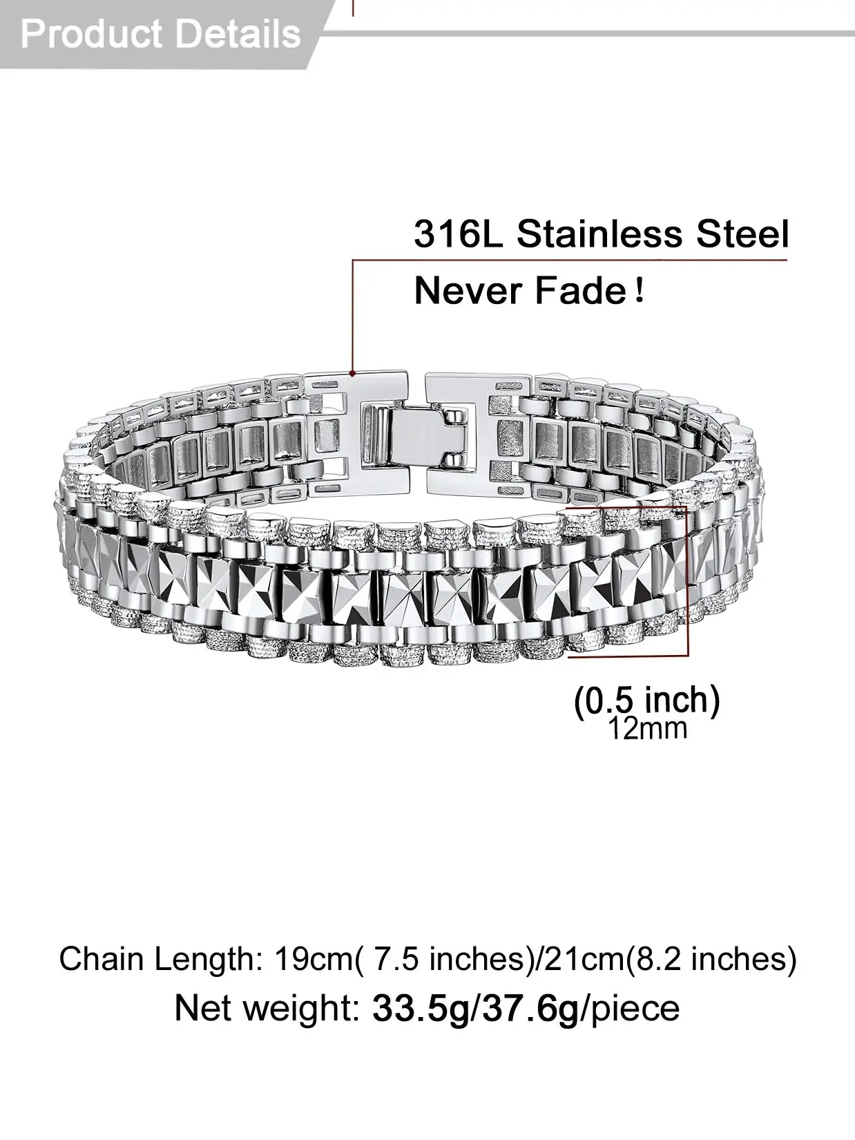 ·Bracelet Size : 12mm(0.47") Width ; two length option : 7.5"(19cm) - for women or small male wrist , 8.3"(21cm) for a big man's wrist.