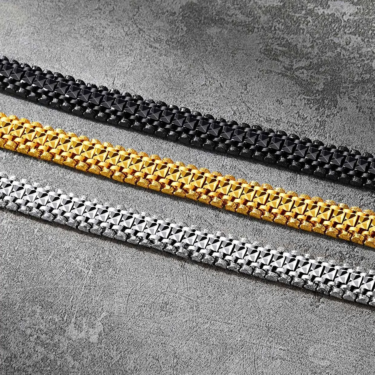 ·Three style chunky bracelets show off the power of a man, always in trend and fashion ; design with sturdy double safety clasp, sturdy and durable hand chain choice.