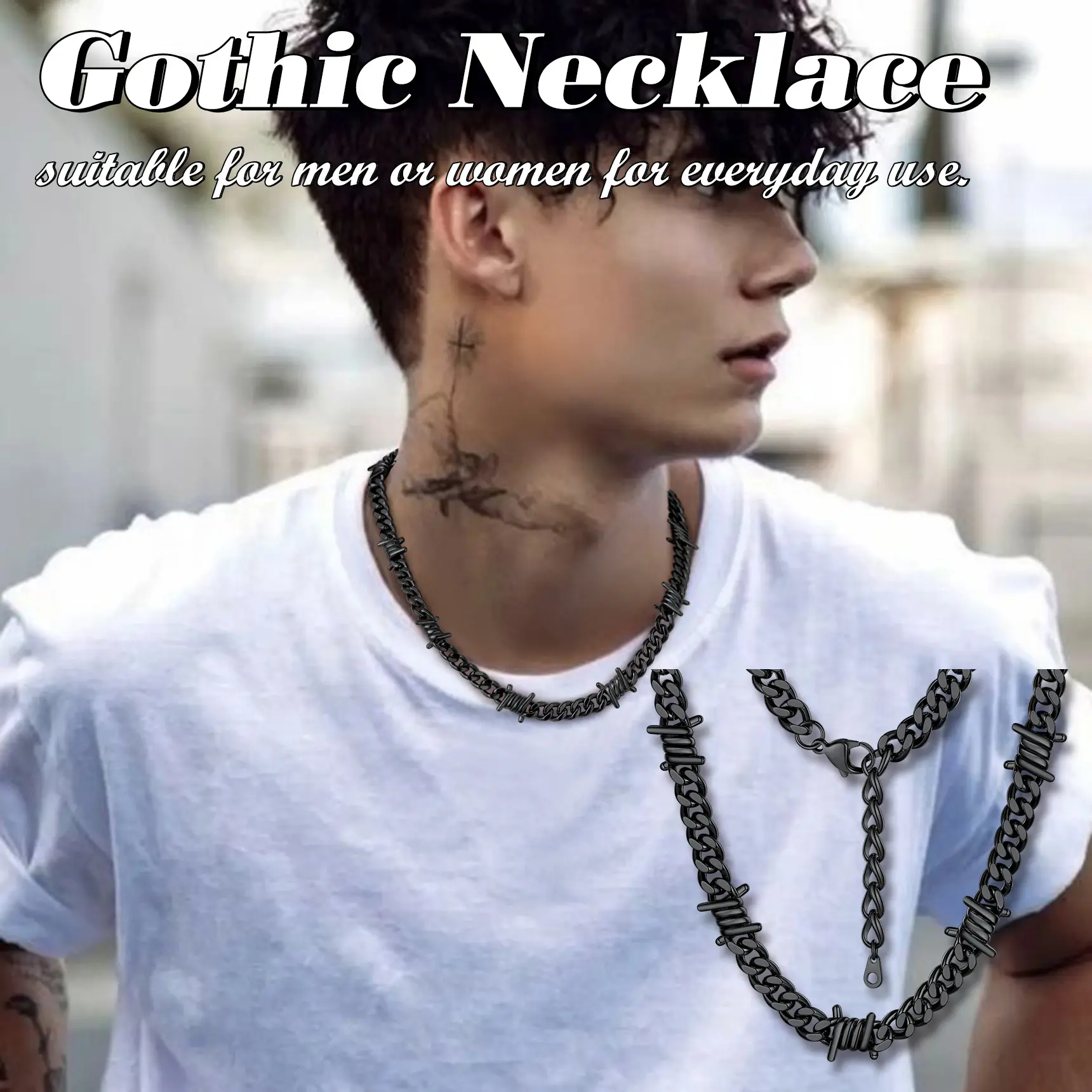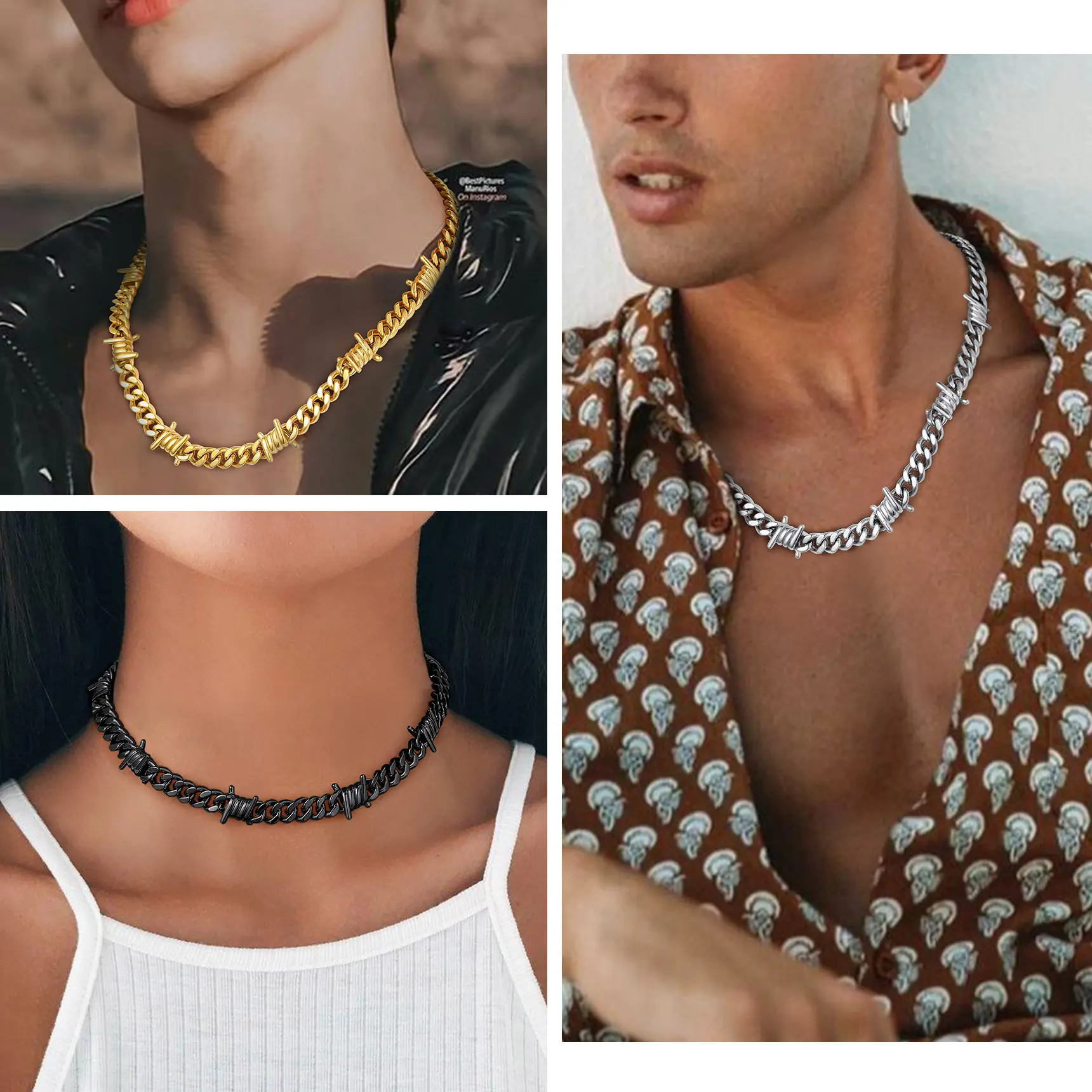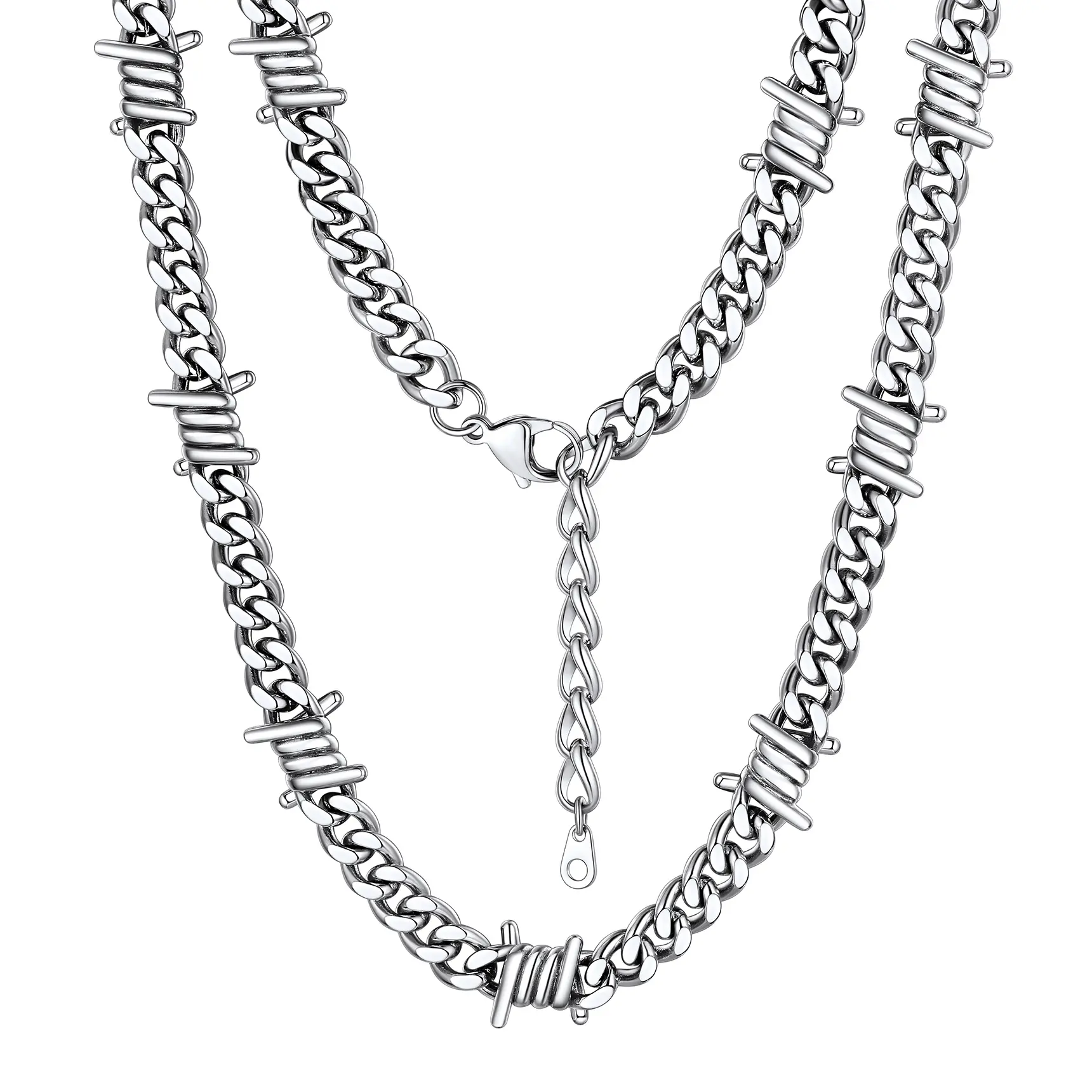 ·Thorns Barbed Wire Necklace: Thorns Link Designed, Much More Cool Unique than normal link chain. Will Definitely not only show your personality, but also gain your audience's focus and complinent. The Link is high polish and safe, won't hurt your skin.