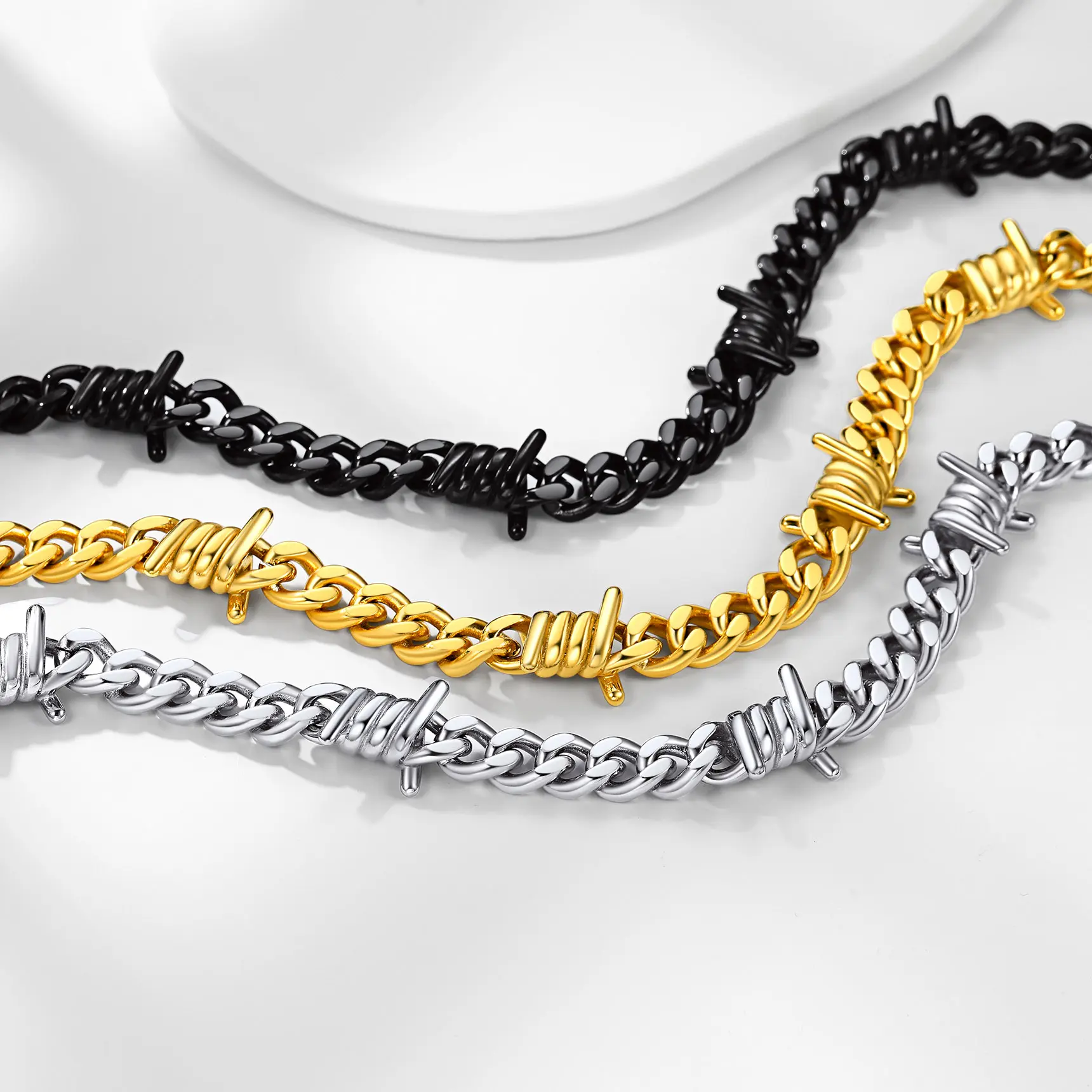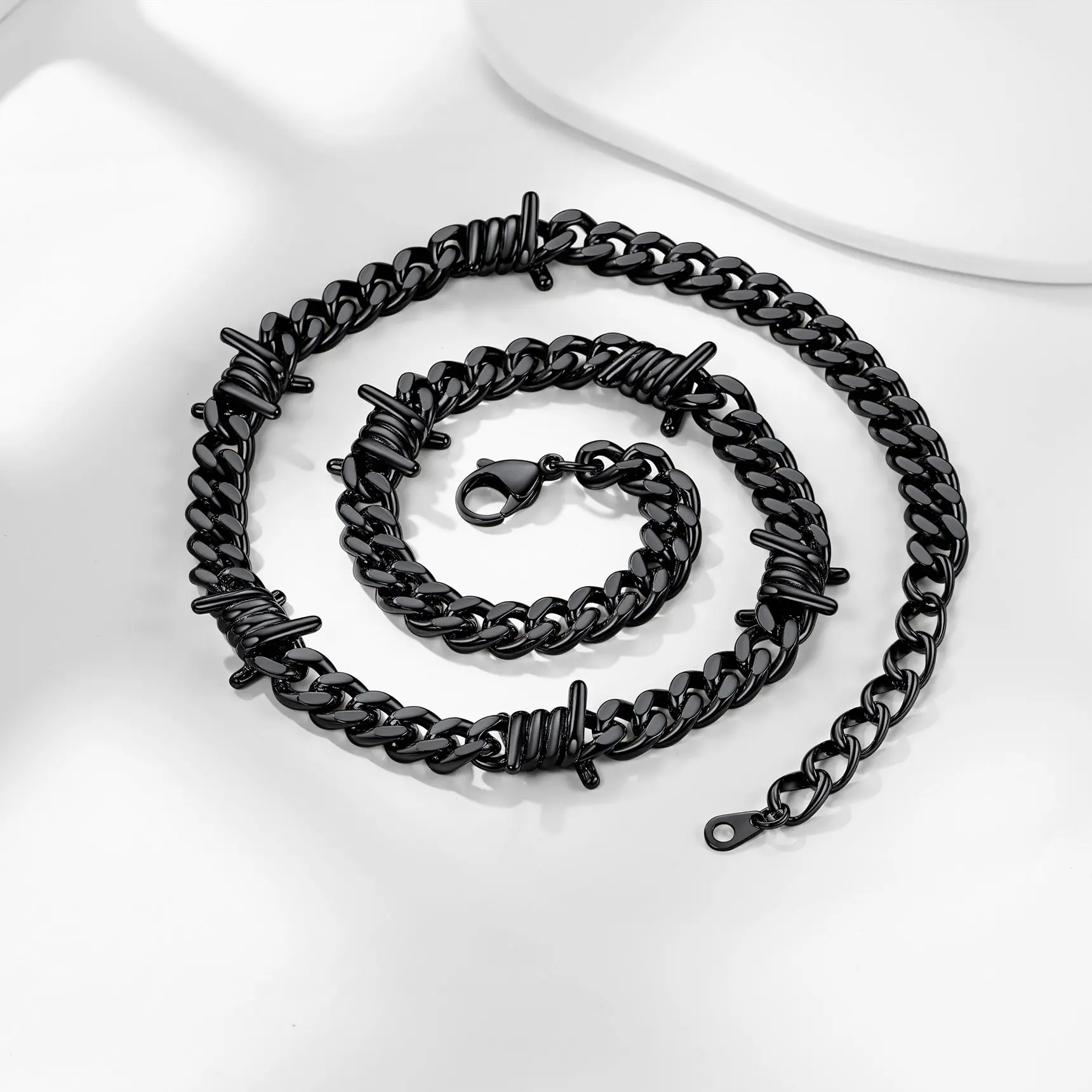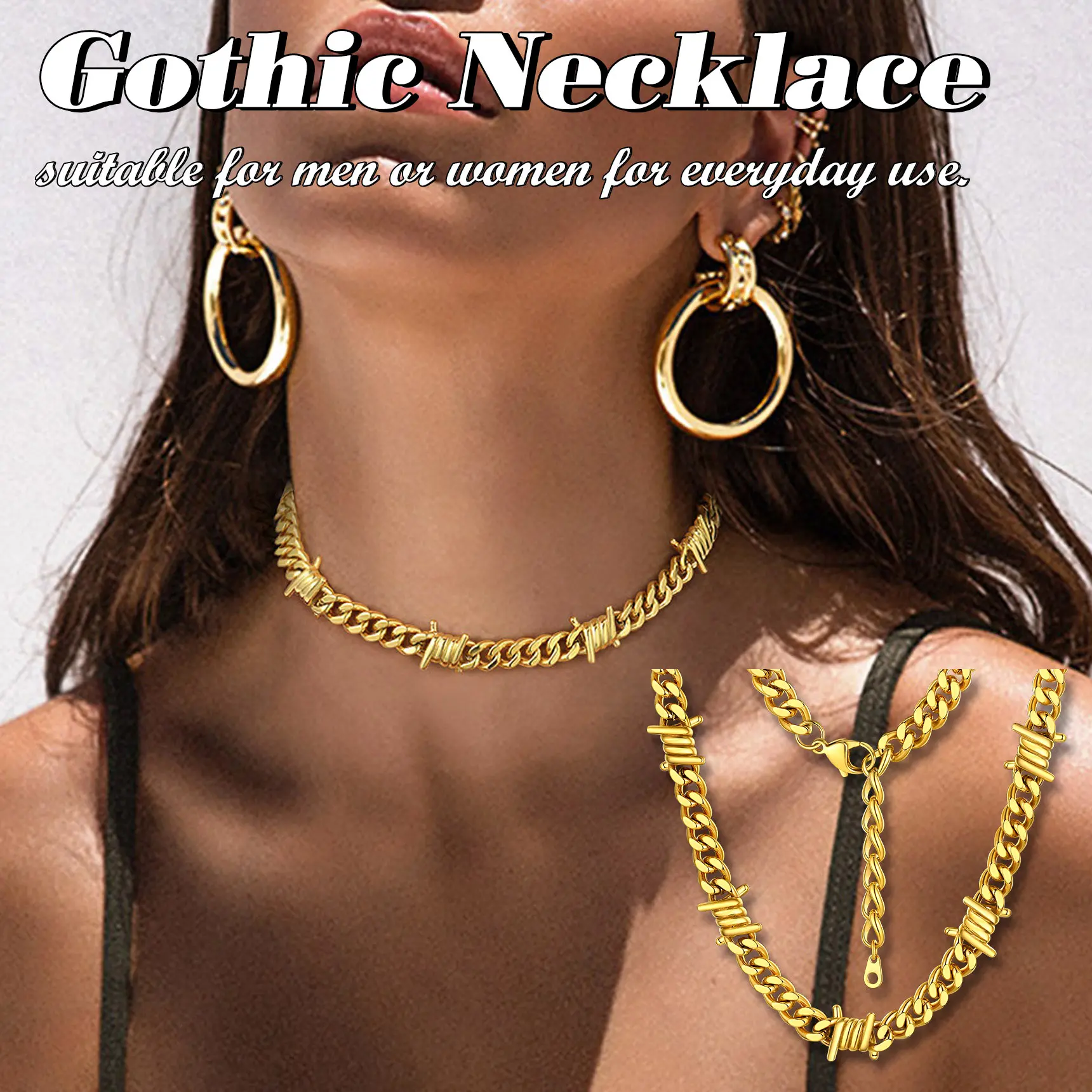 ·Thorns Barbed Wire Necklace: Thorns Link Designed, Much More Cool Unique than normal link chain. Will Definitely not only show your personality, but also gain your audience's focus and complinent. The Link is high polish and safe, won't hurt your skin.