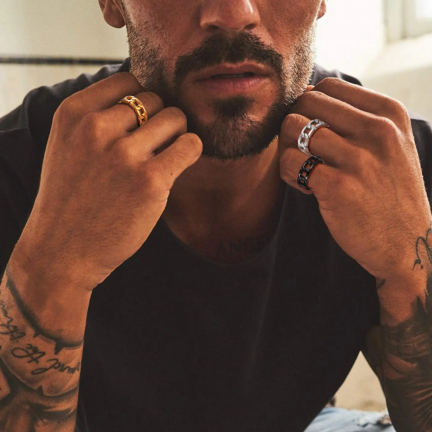 New arrival - Cuban link ring. Steel, golden, black & grey four colors available at #Prosteel #CapCut #prosteeljewelry #jewelrylove #falldealsforyou #rings #ootd #ttsacl #unisexfashion #hiphopjewelry #tiktokmademebuyit