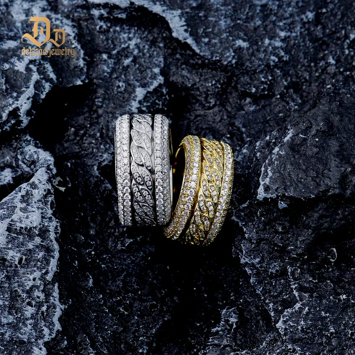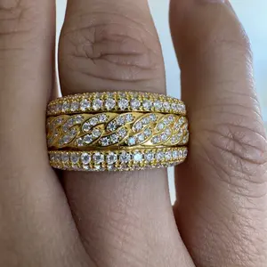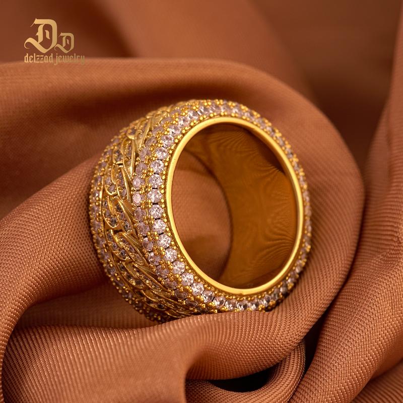 ·Synthetic Moissanite 5-Layer Iced Cuban Ring, chunky and bold, carefully cut and polished to maximize their shine and luster, making a dazzling look that catches the light from every angle.