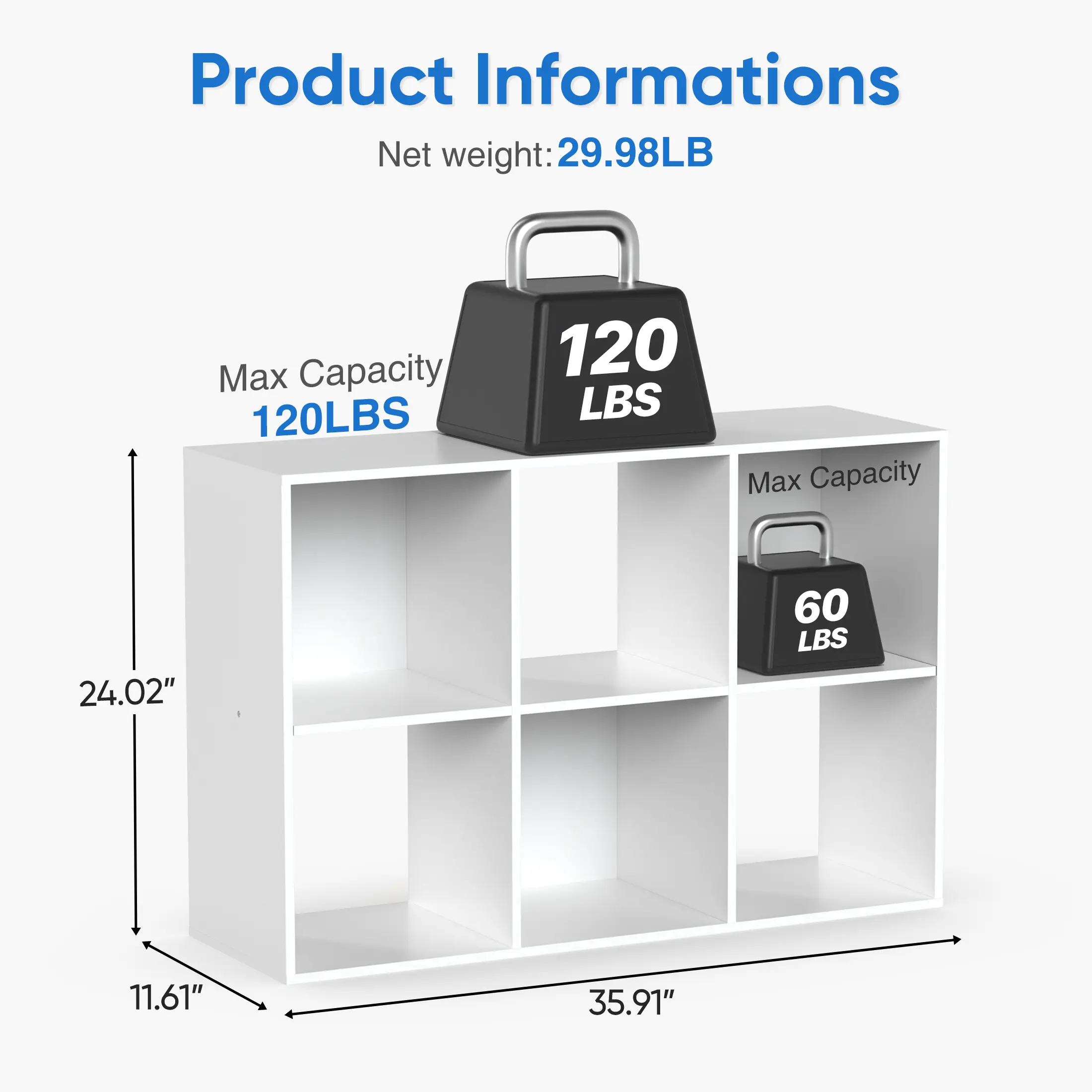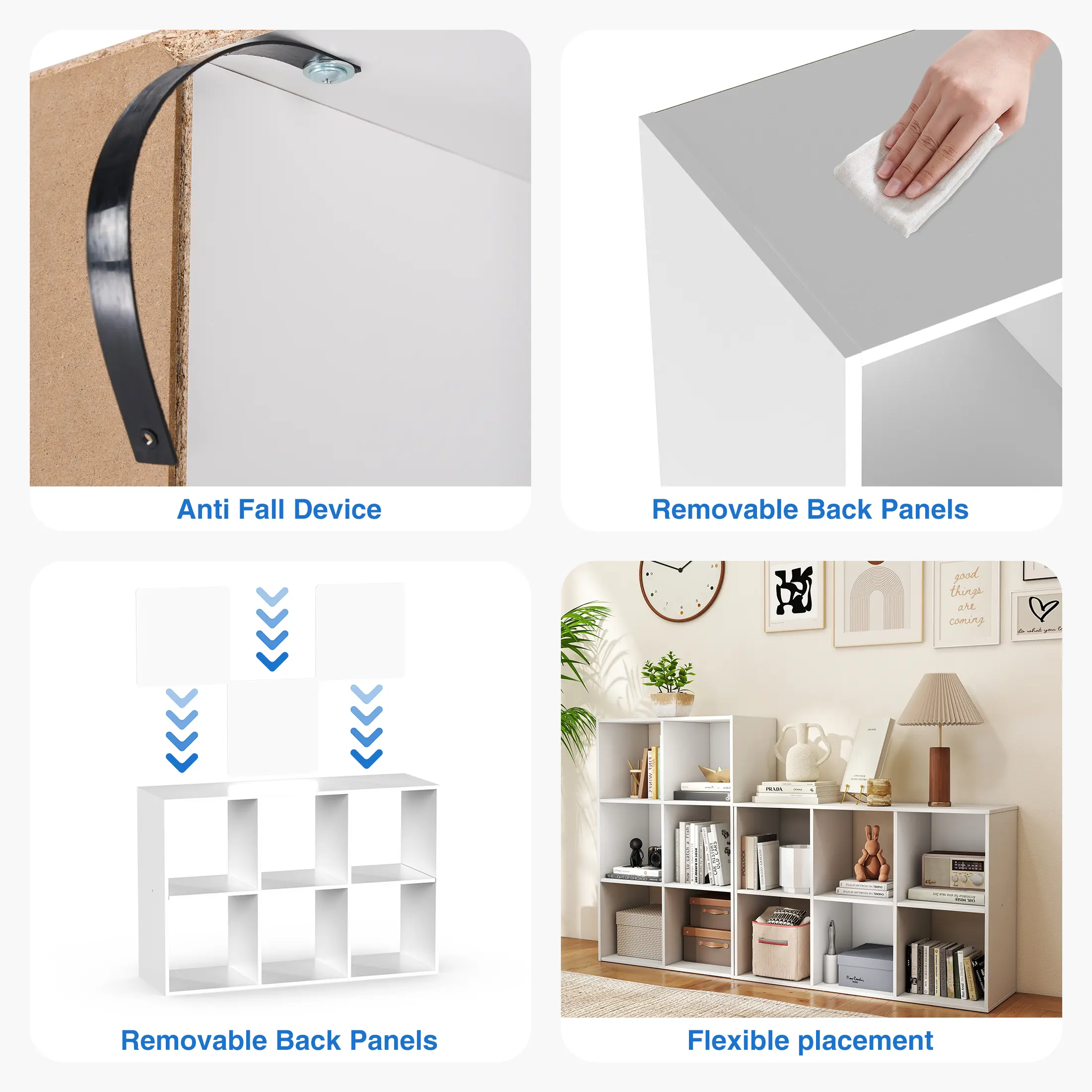 ·[High-Quality Material] Built to last with premium MDF construction, this stackable cubicle bookshelf features reinforced removable back panels for customizable stability and an impressive 60-lb capacity per cube (120 lbs on top shelf) - perfect for storing books, vinyl records, or storage bins.