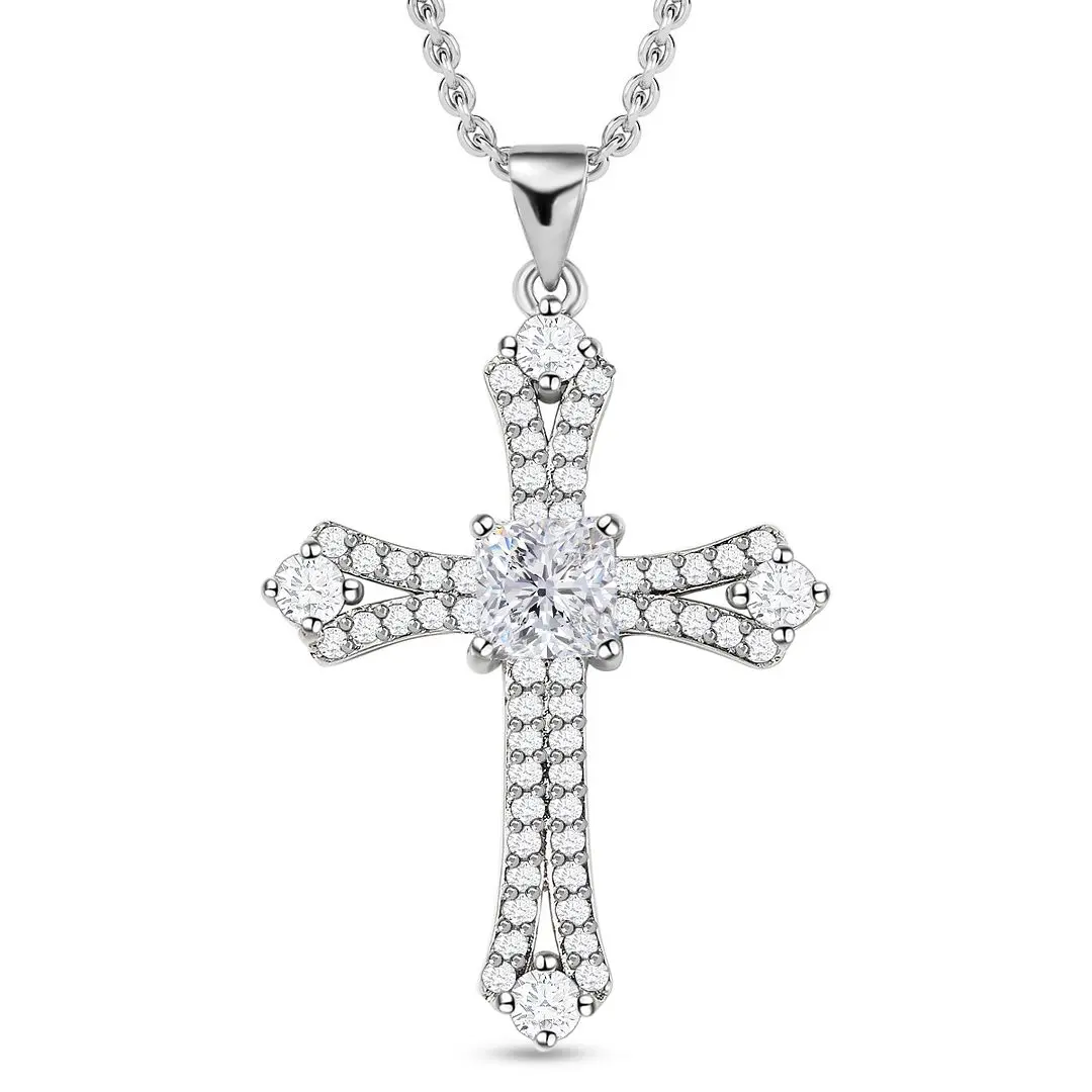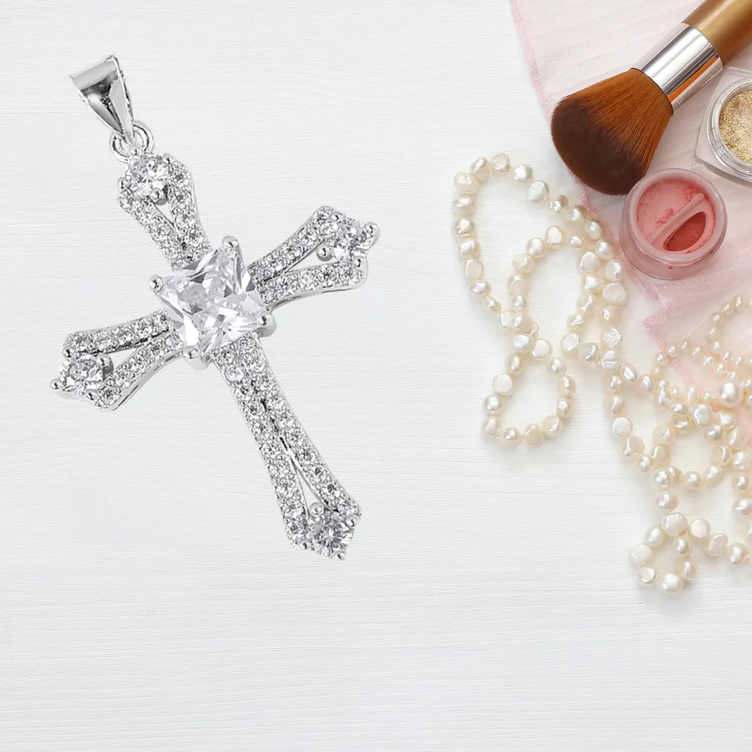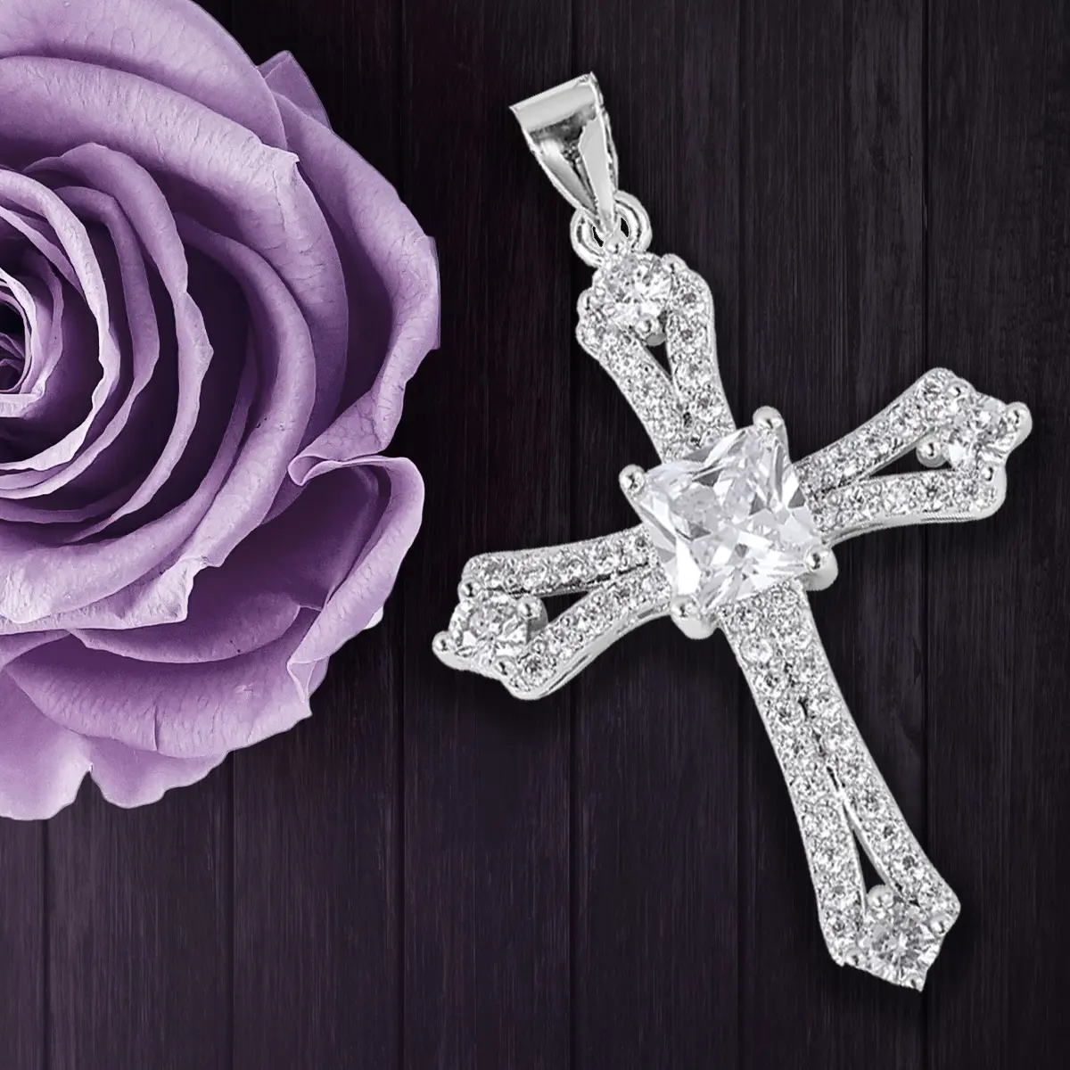 This elegant cross pendant necklace is all set to add more sparkles to your style. The simulated diamond pendant necklace comes with elegance and design matched with reverent symbolism. Add this beauty to your collection for a dramatic appeal.