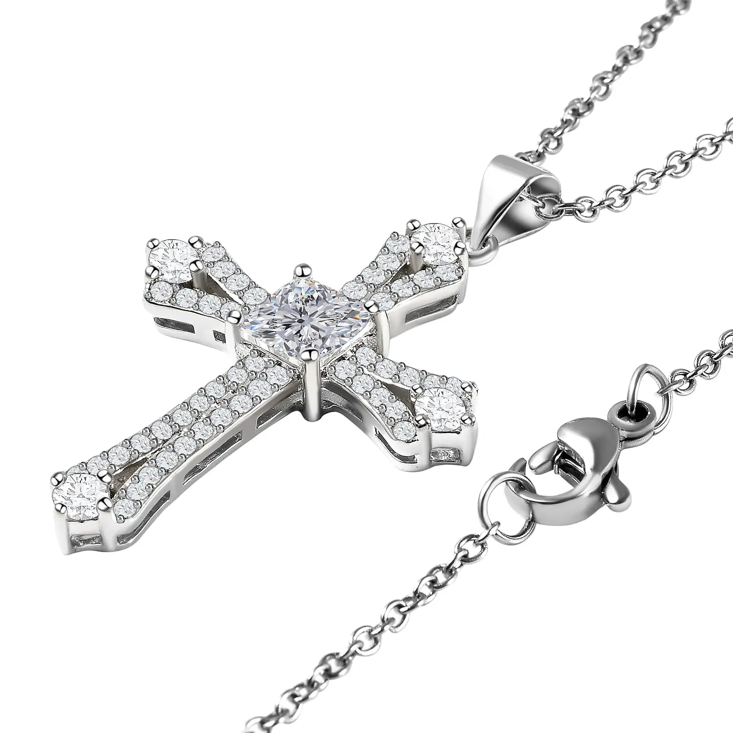 Cubic Zirconia Cross Necklace for Women - Stainless Steel Cz Pendant Faith Religious Jewelry - ION Plated Gold Cross Chain Size 20 Inches Christian Birthday Christmas Gifts