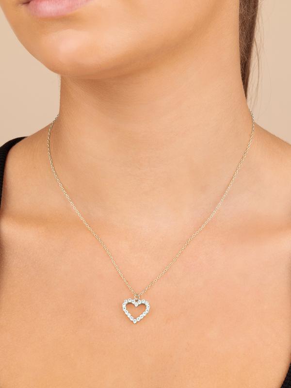 5. Sterling Silver Cubic Zirconia Outline Heart Pendant Necklace