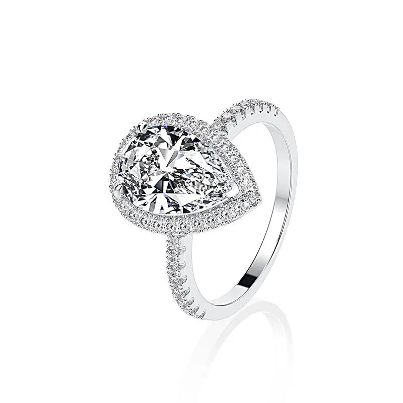 Decorate your life with Effinny's 2.2ct pear cut classic wedding engagement ring. Crafted from 925 sterling silver, this sparkling ring features a 5A cubic zirconia, offering the perfect balance of elegance and affordability. Embrace luxury without compromise and make a statement that lasts a lifetime.
