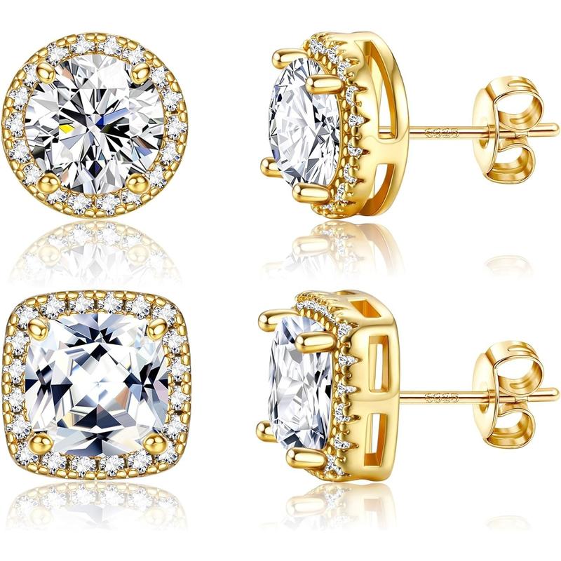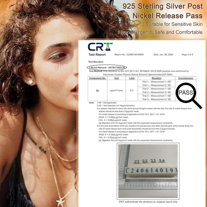 ·925 Sterling Silver Earrings ------ THESE stud earrings are made of sterling silver column and high quality copper. Cadmium and nickel-free, hypoallergenic earrings are suitable for sensitive ears. The nickel release test has passed, making them more reliable. In addition, with 18K gold and white gold plating, you can enjoy long-lasting earrings without worrying about discoloration. The exquisite cubic zirconia setting technique ensures that the gemstones are firmly fixed.