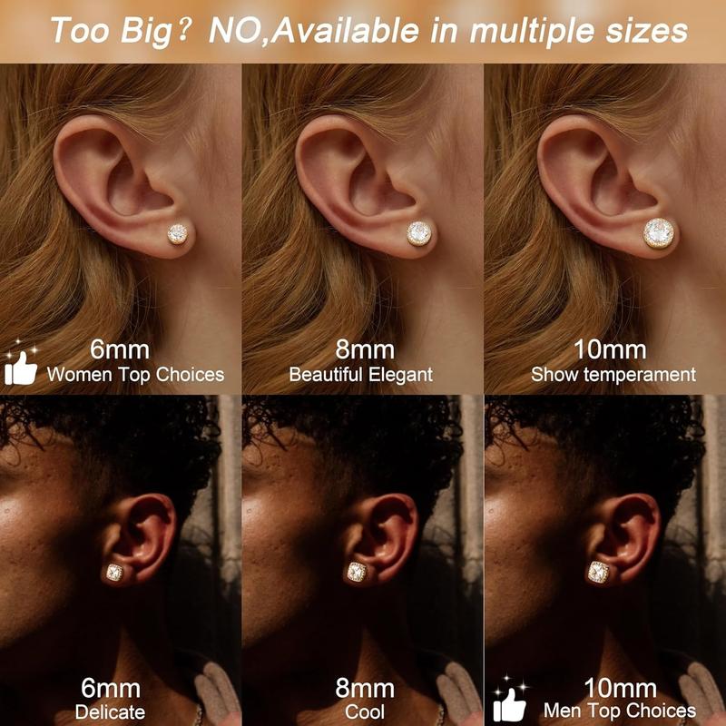 · Too big? No! ------- 10mm classic square zircon earring too big? Don't worry. Our collection includes 6mm and 8mm square crystal zircon stud earrings, which are perfect for those who prefer a more elegant and understated look. Whether you are a man or a woman, you will fall in love with the charm of our brilliant square crystal zircon earrings.