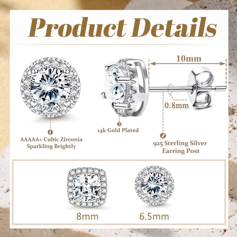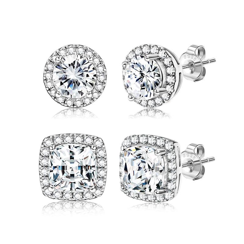 ยท2-4 Pairs Halo Stud Earrings Set- 2 pairs cubic zirconia stud earrings come in a set. One order includes square earrings and round earrings. Two shapes of simulated diamond halo earrings will be a new fashion, perfect match for any outfits. Simplistic and delicate looking, classic and stylish. Unisex design, suits for men and women of all ages.