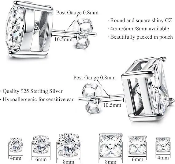 ·MULTIPLE SIZES AVAILABLE: Gauge Size: 20G =0.8mm, Inlaid with 4/6/8MM Round/Square Natural Rainbow Quartz, Which is The Second High-hardness Natural Mineral after Diamonds, So the Quartz Earrings is Not Easy to Be Scratched. Packed in a Cute Jewelry Pouch. Perfect Gifts for Mother, Wife, Girlfriend as Anniversary Gift, Mother's Day Gift, Graduation Gift, Valentine's Day Gift, Christmas Gift.