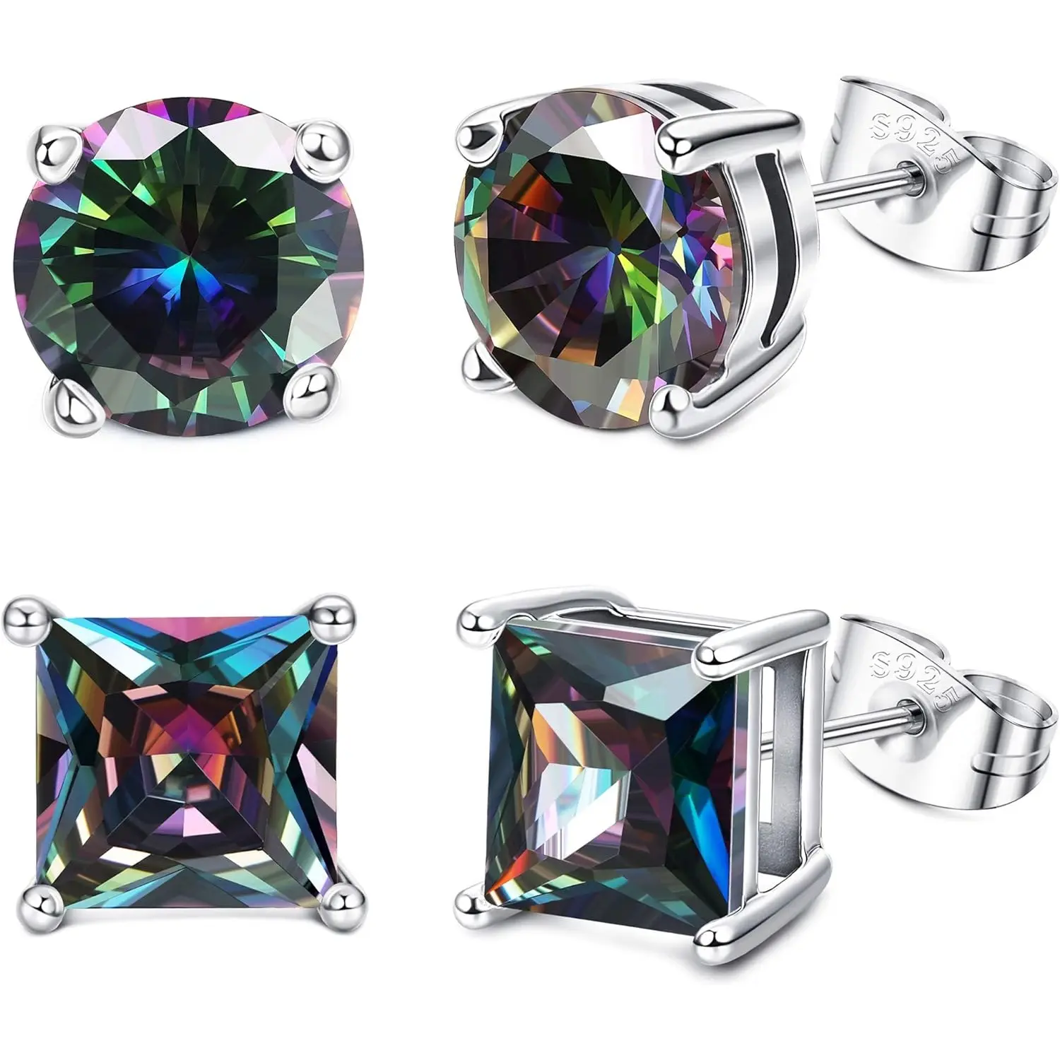 ·AFFORDABLE EARRINGS SET: One Order Includes 1Pairs of Round Quartz Stud Earrings & 1Pairs of Square Quartz Stud Earrings. Satisfy Your Need About These Colorful Natural Quartz Earrings. Classical 4 Prongs Stud Earrings Suit for Both Men and Women, Easy to Match with Your Daily Outfits.