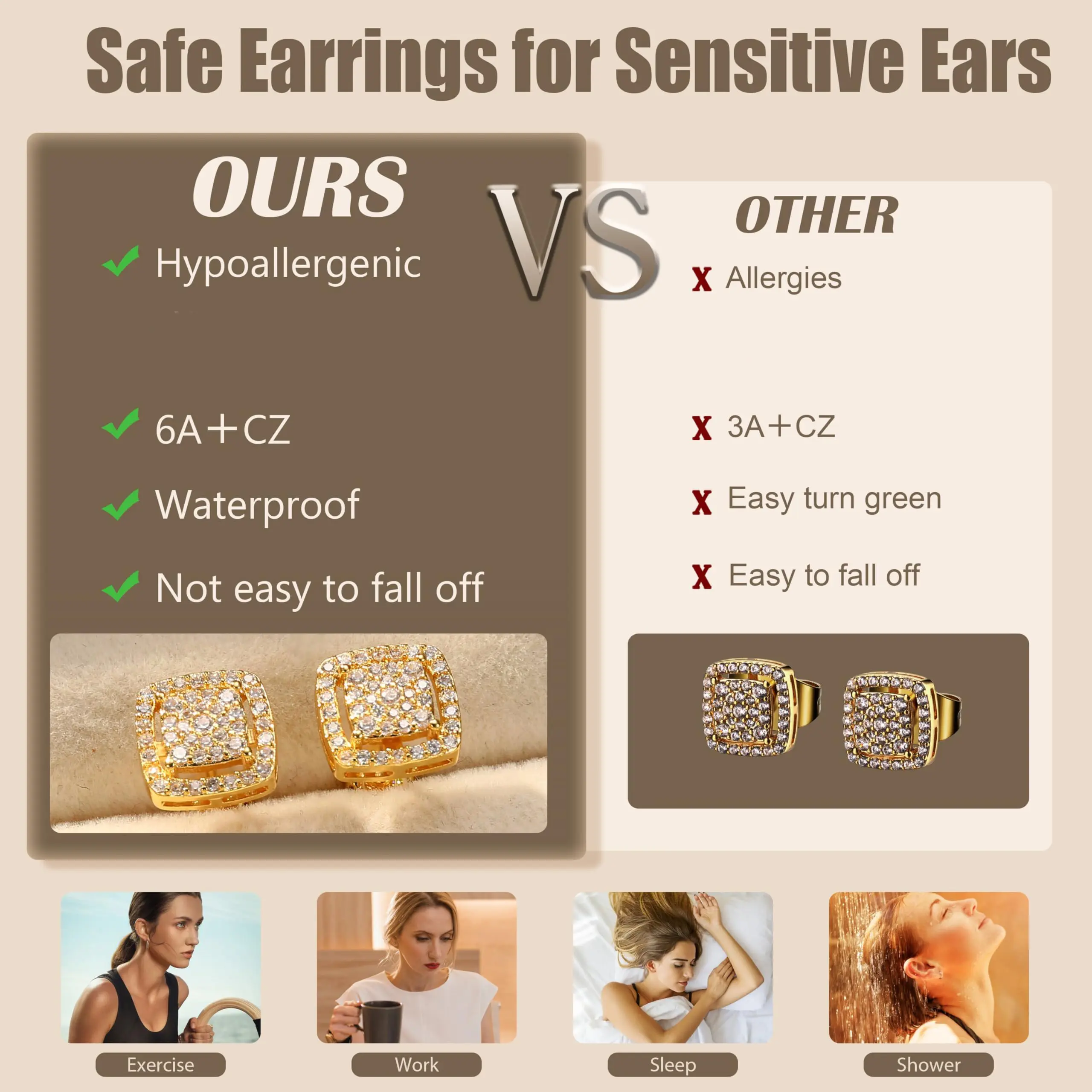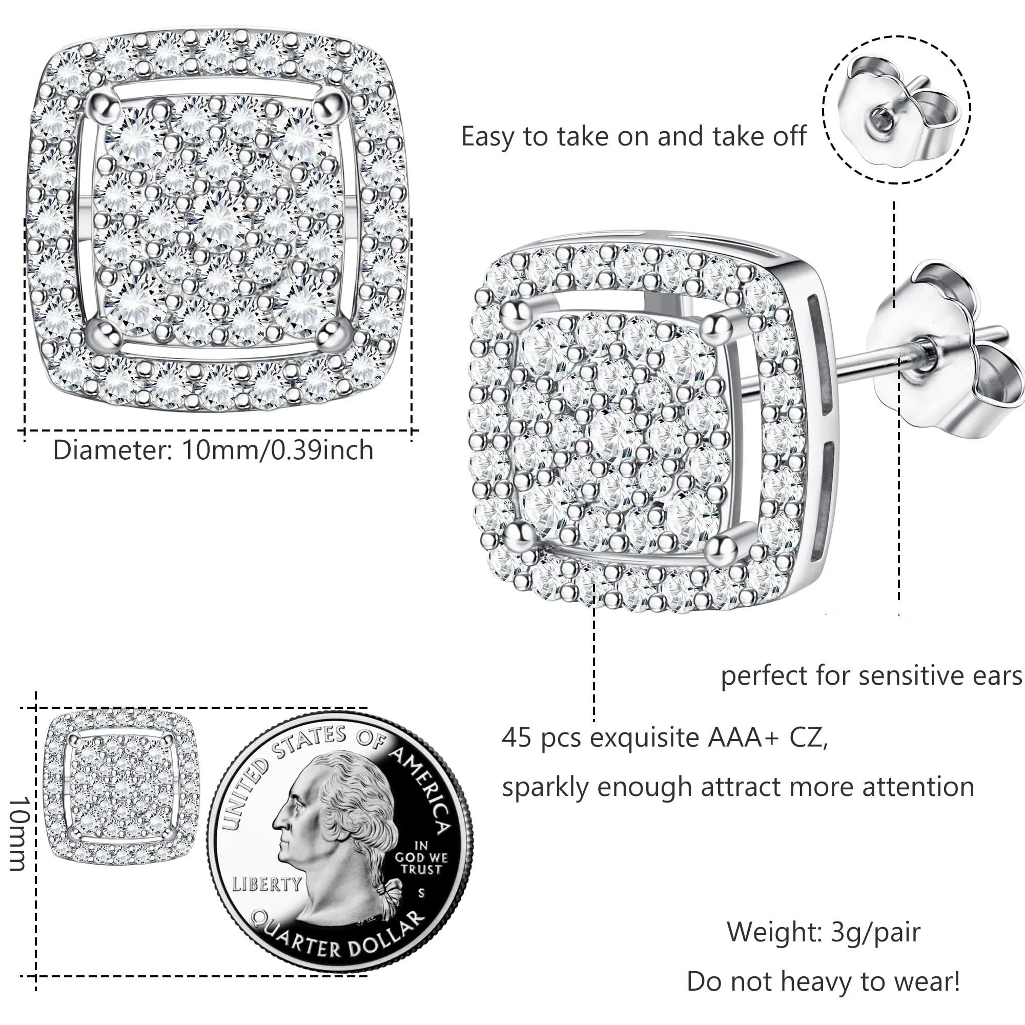 I absolutely love these FASACCO Cubic Zirconia Stud Earrings and the screw backs are truly Genius I feel confident that I won’t loose them 😃 thank you 💜