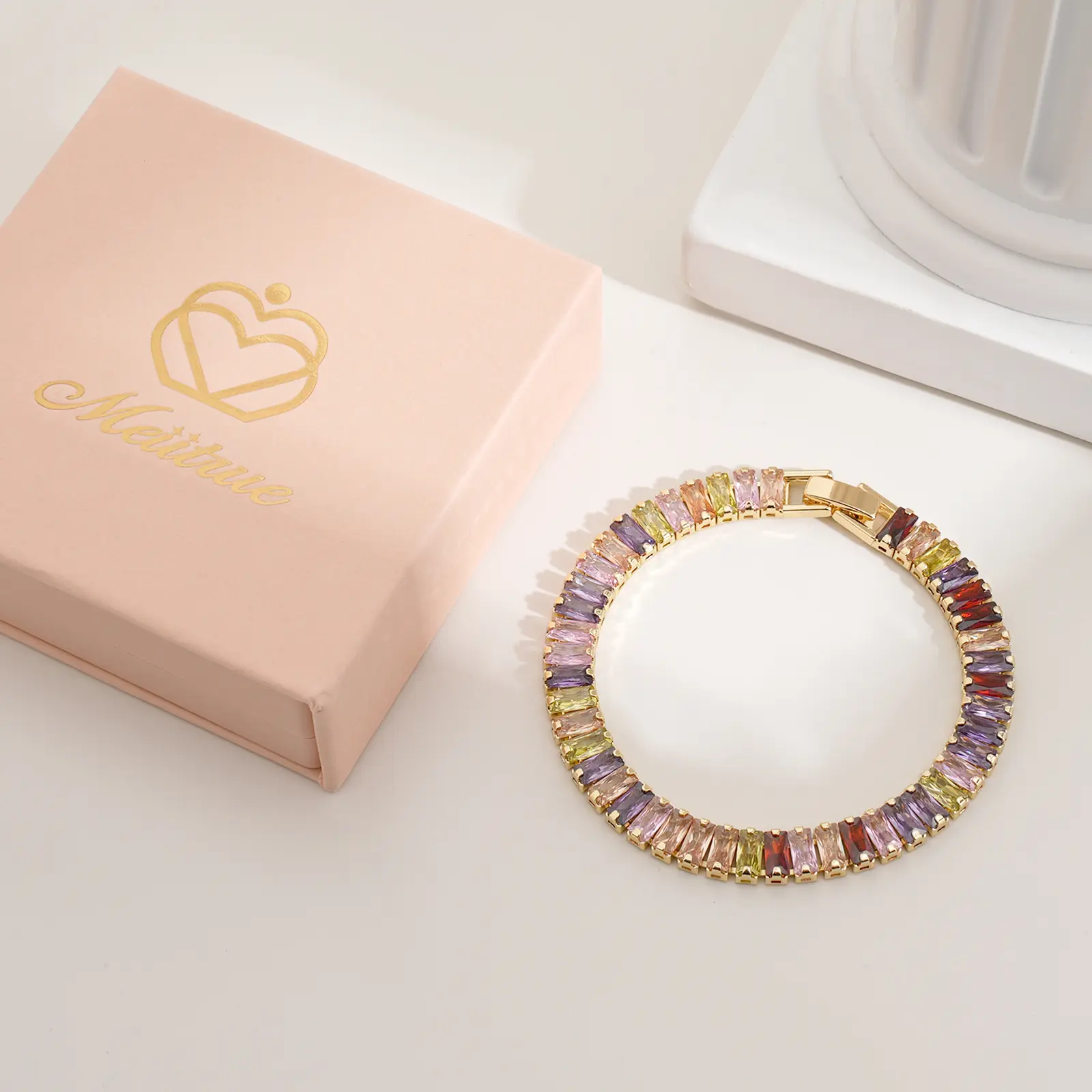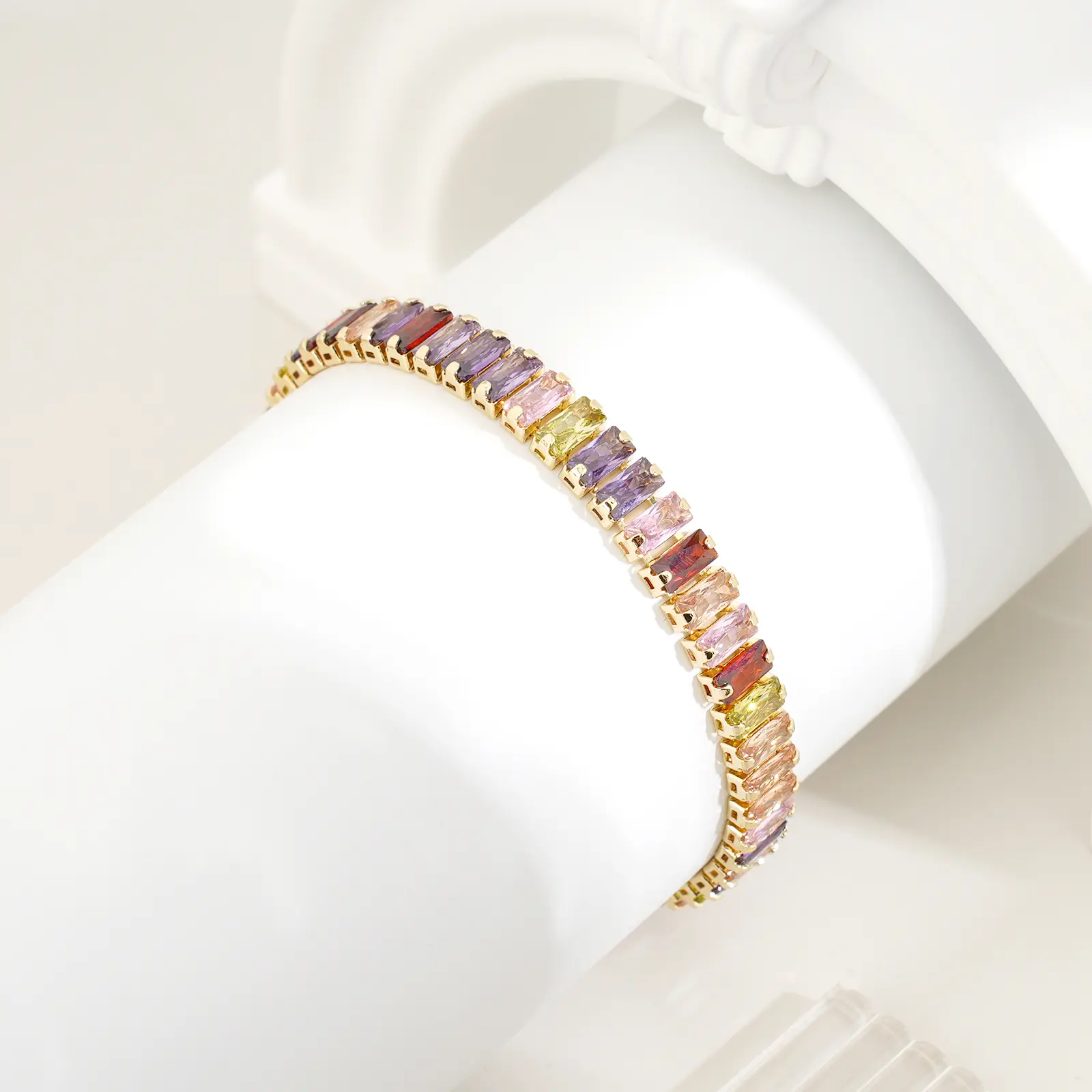 ·Design: Classic tennis bracelet style with a colorful, modern twist