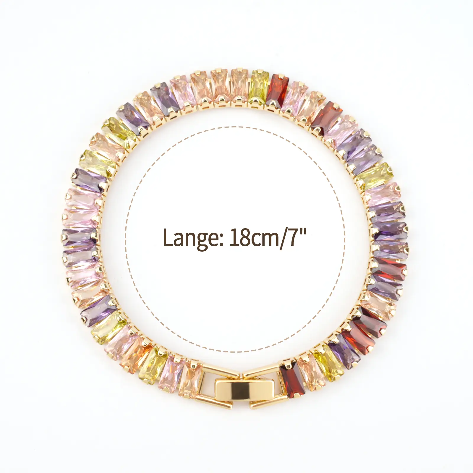 14K Gold Plated Rainbow Cubic Zirconia Bracelet – 7" / 18cm