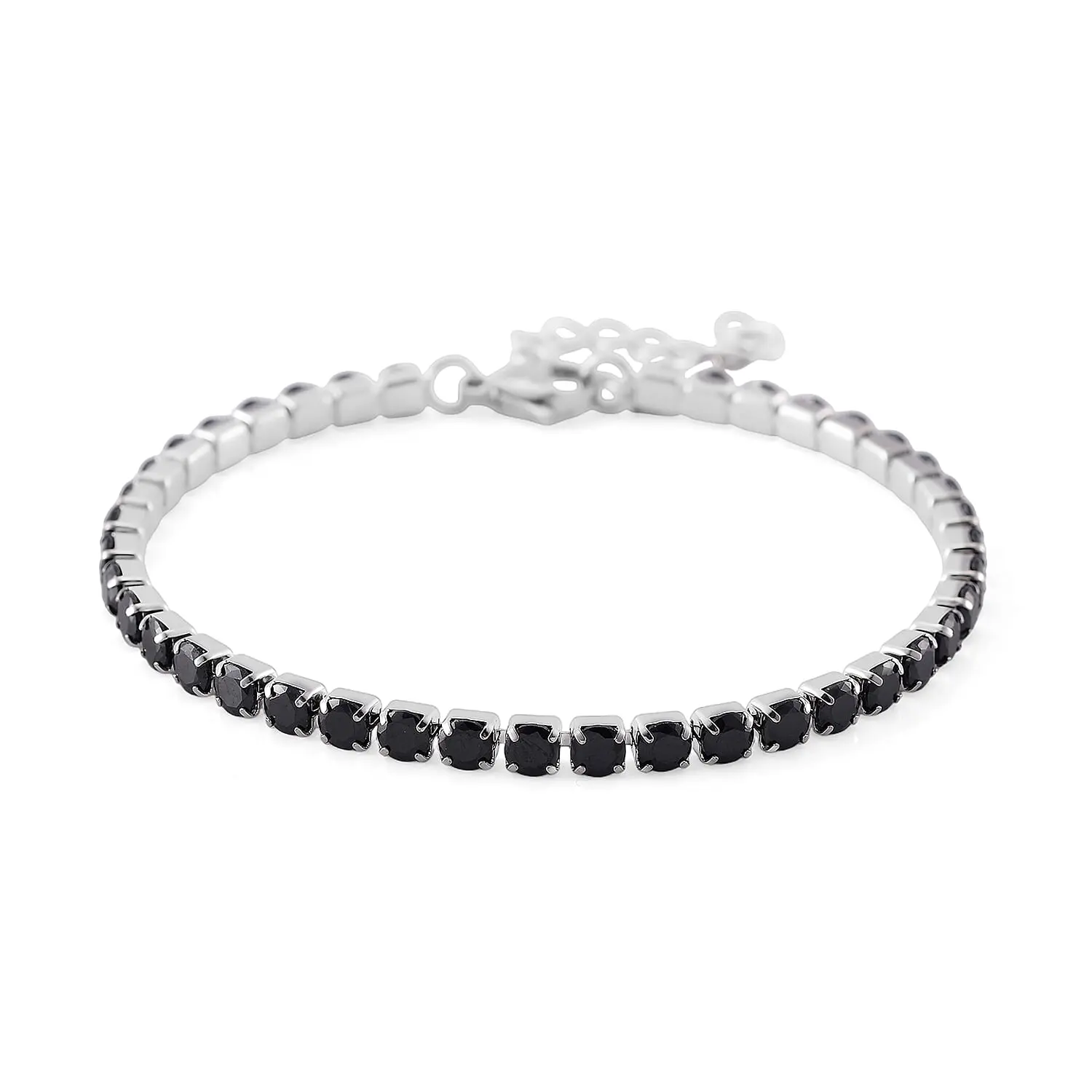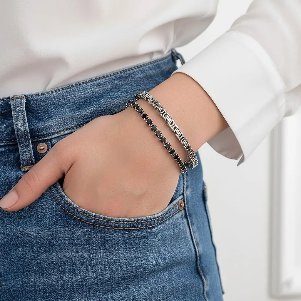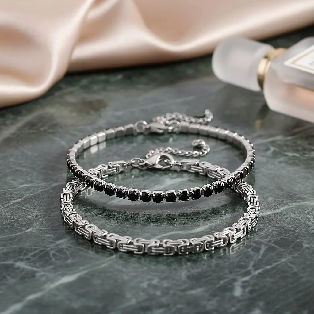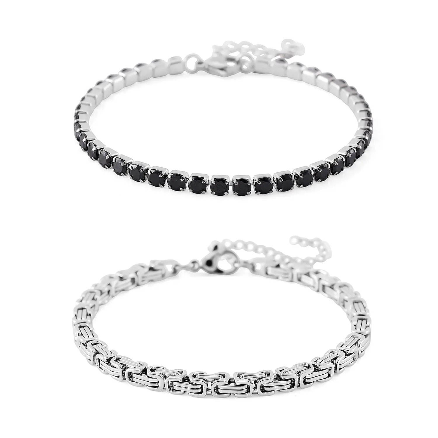 Cubic Zirconia Set of 2 Tennis and Byzantine Bracelet in Stainless Steel 7.50-9.0In