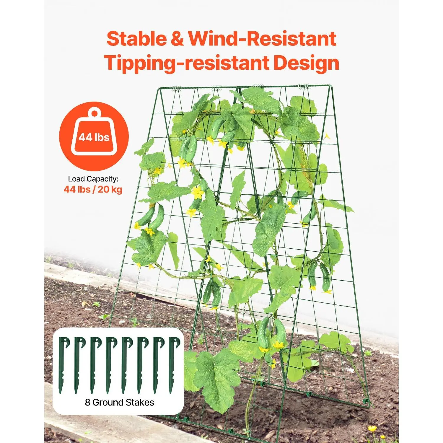 • Promotes Plant Growth: The A-frame cucumber trellis provides ample space on both sides for planting various crops. Its design allows for optimal airflow, enabling climbing plants to receive plenty of sunlight, which enhances photosynthesis and helps ensure a bountiful harvest.