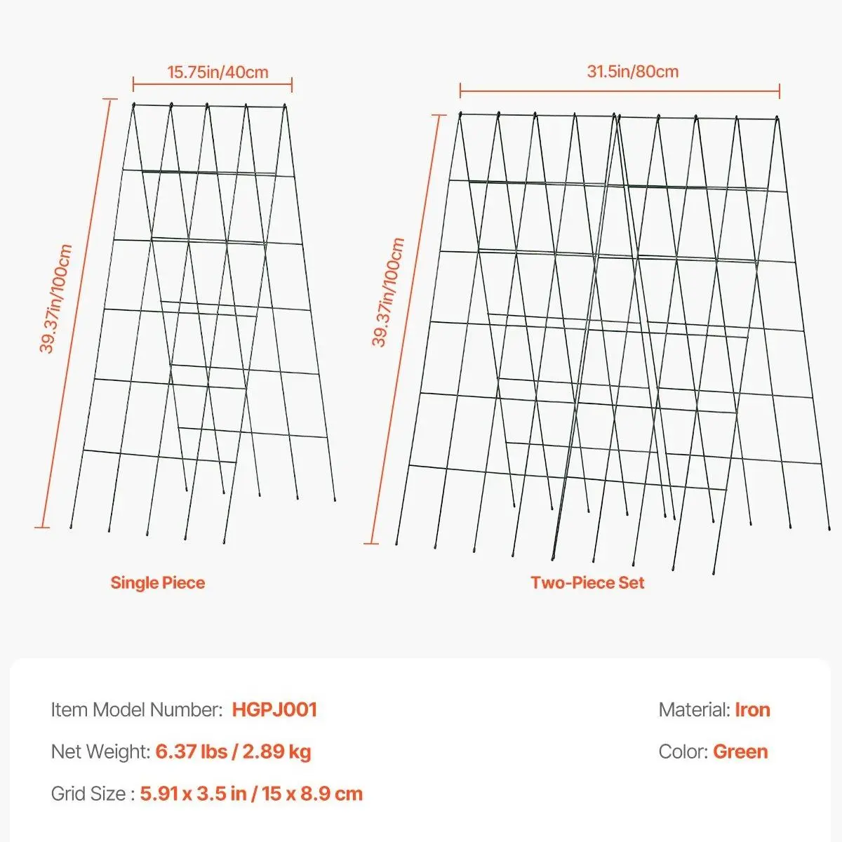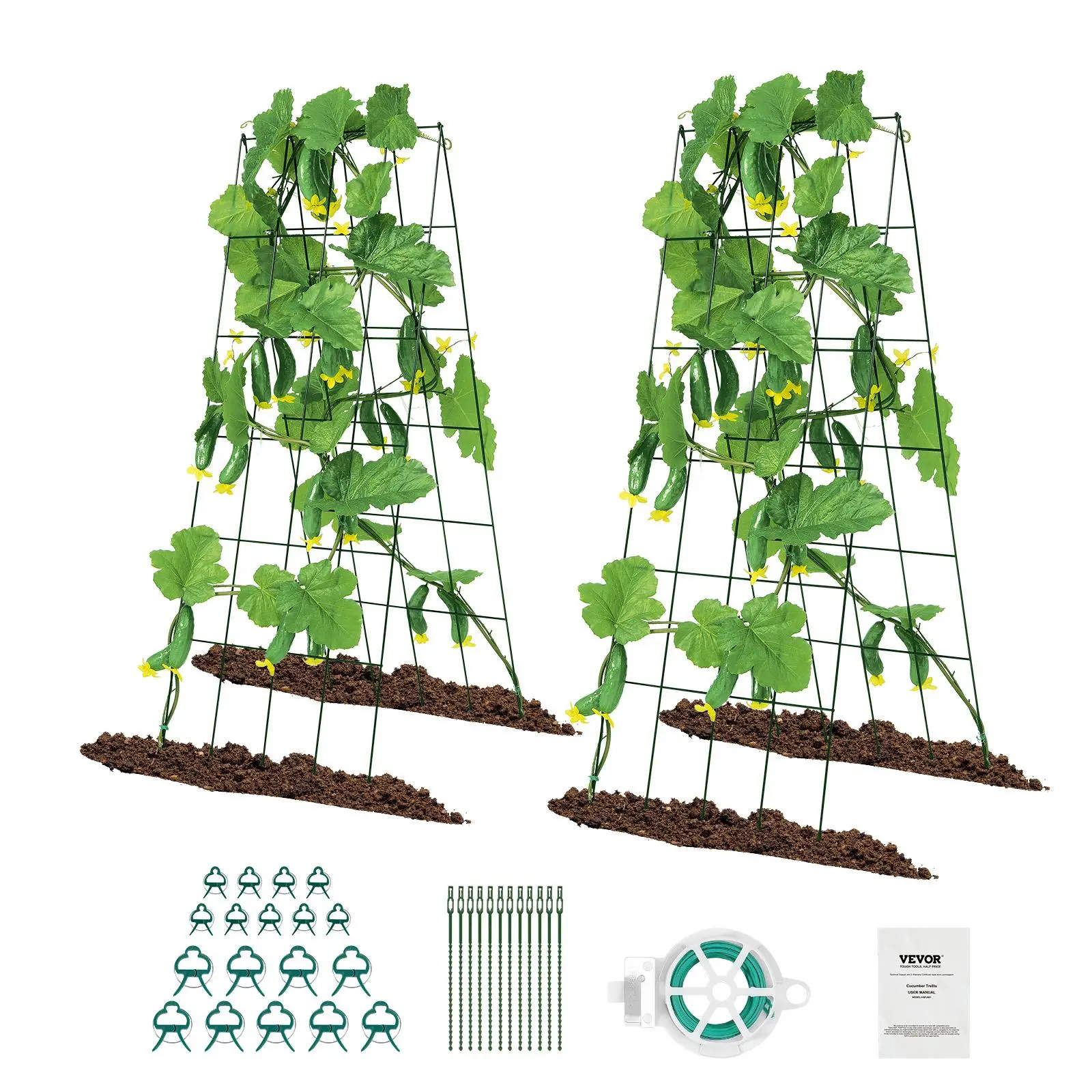 • What's Included: The package includes 4 metal mesh panels (15.75" W x 39.37" H), 18 plant support clips, 20m twist tie, 12 plastic zip ties, and 1 instruction manual.