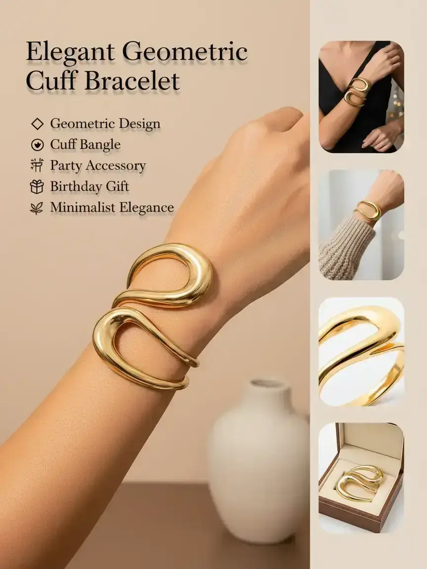 【Geometric Shape】: The unique geometric structure of this cuff bangle distinguishes it from traditional jewelry, adding a contemporary flair to any outfit.