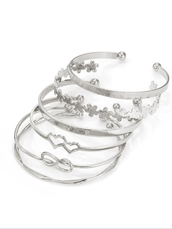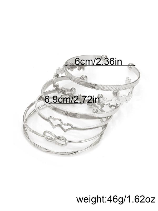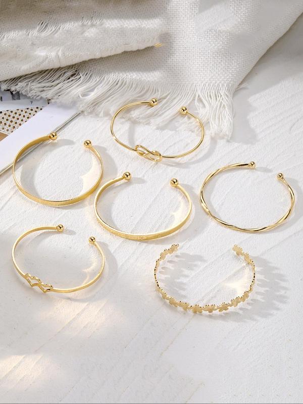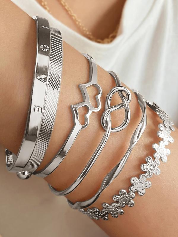 Vintage Knot & Flower Design Engraving Alloy Cuff Bangle (6pcs), Trendy Bangles, Fashion Jewelry for Party, Daily Clothing Decor, Trendy All-match & Exquisite Jewelry for Birthday Gift