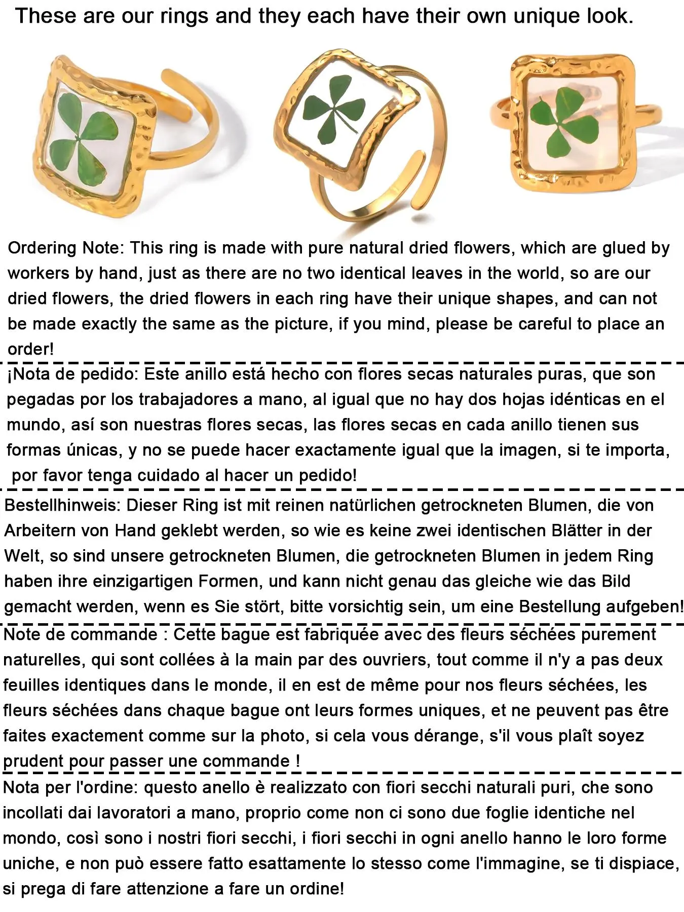 Technically they are all good, js bugs me it's a one size fits all I didn't realize that, so it's more like only 2 or 3 fingers that they really fit on, otherwise craftsman ship is great I love the rings super cute