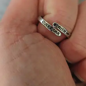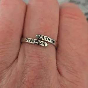 Love the adjustable option. It will fit any size finger on any hand. No guessing ring size. Perfect gift for anyone who needs to be reminded "Faith Over Fear".