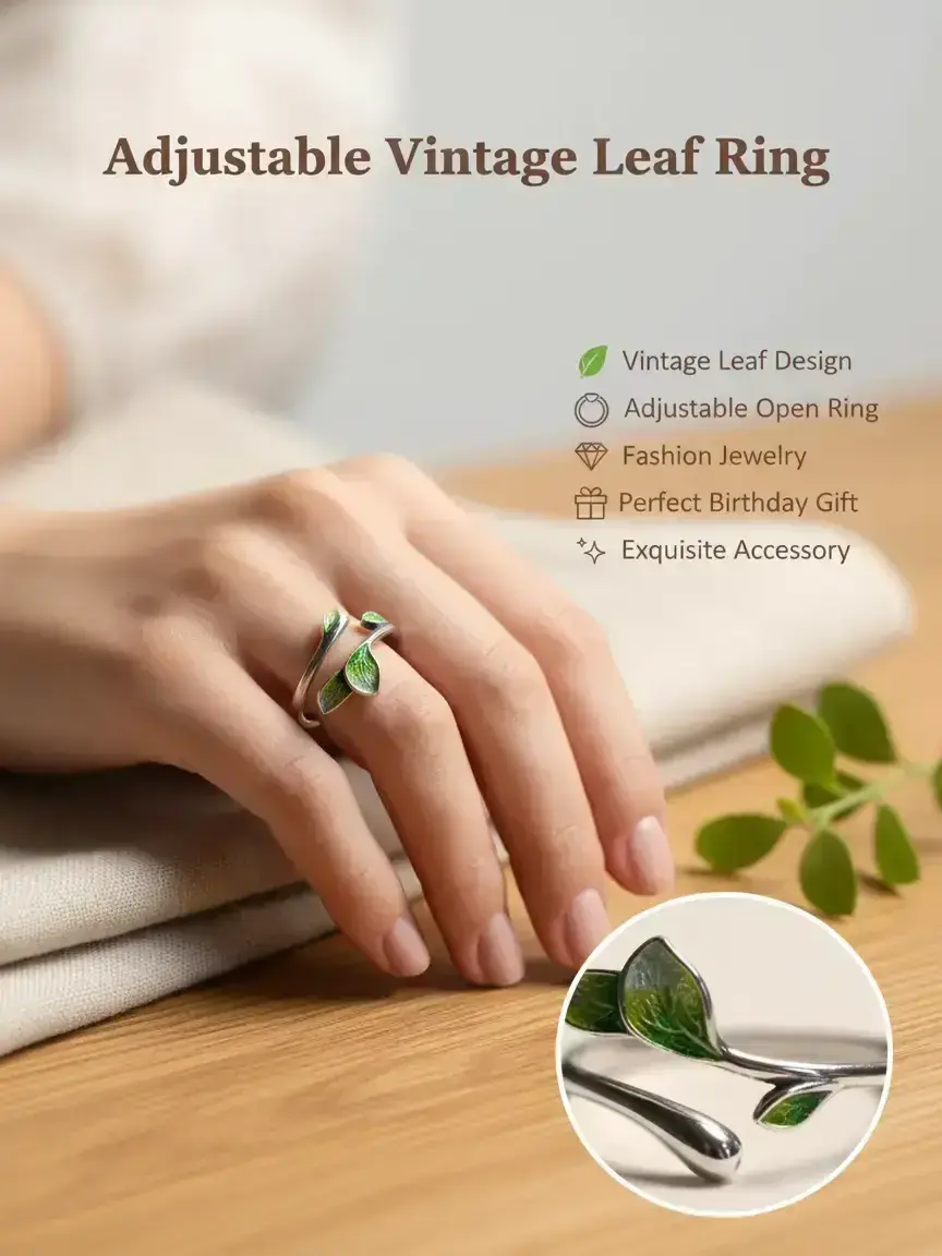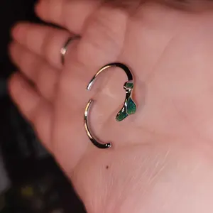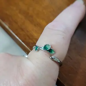 Vintage Leaf Design Cuff Ring Adjustable To Size it’s so beautiful and elegant I love this piece of jewelry with its unique green leaf 🍃 design and really like it in Silver 🥰