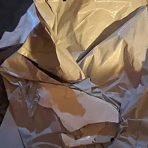 It must've been made of tinfoil since it snapped in the bag.
