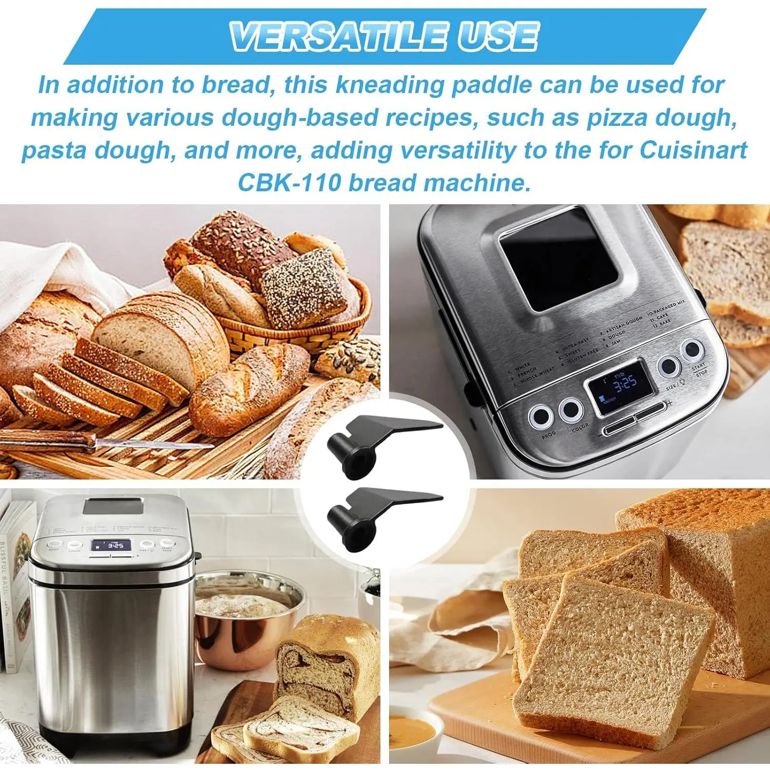 Versatile Use: In addition to bread, this kneading paddle can be for making various dough-based recipes, such as pizza dough, pasta dough, and more, adding versatility to the for Cuisinart CBK-110 bread machine.