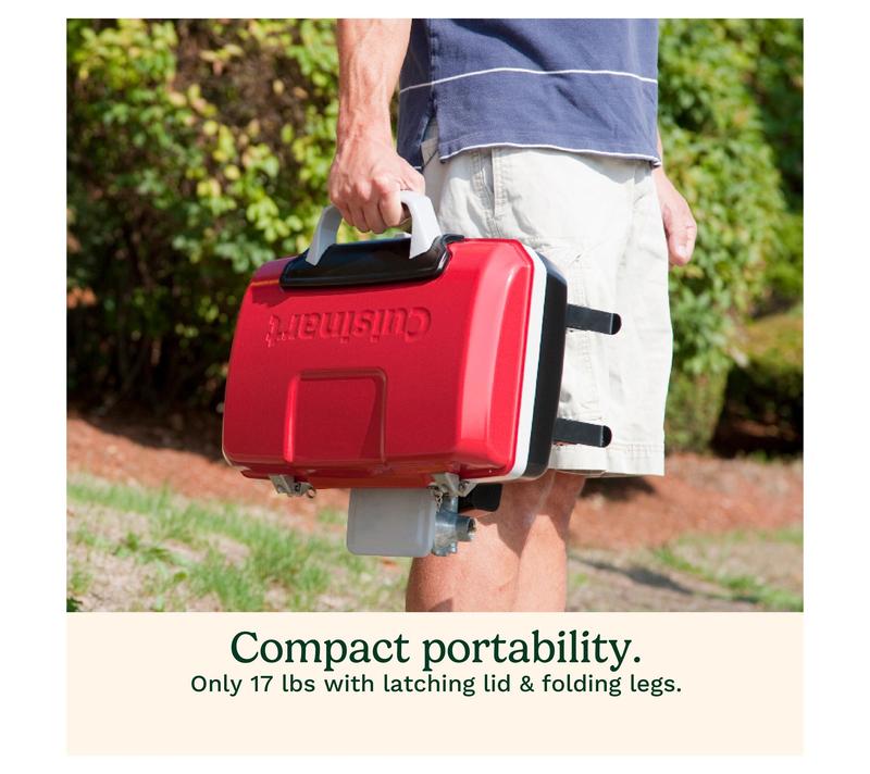Fire up great meals whether you're in your backyard, at the beach, or celebrating at the campsite with this petite gourmet portable tabletop grill. Its compact design makes it easy to transport, while the generous stainless steel grilling surface means you can cook up burgers, steaks, chicken breasts, or fish for family and friends just about anywhere. From Cuisinart.