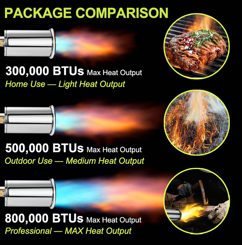 This torch delivers up to 800,000 BTU/hr ≈ 234.46 kW, providing powerful and efficient performance for any task.