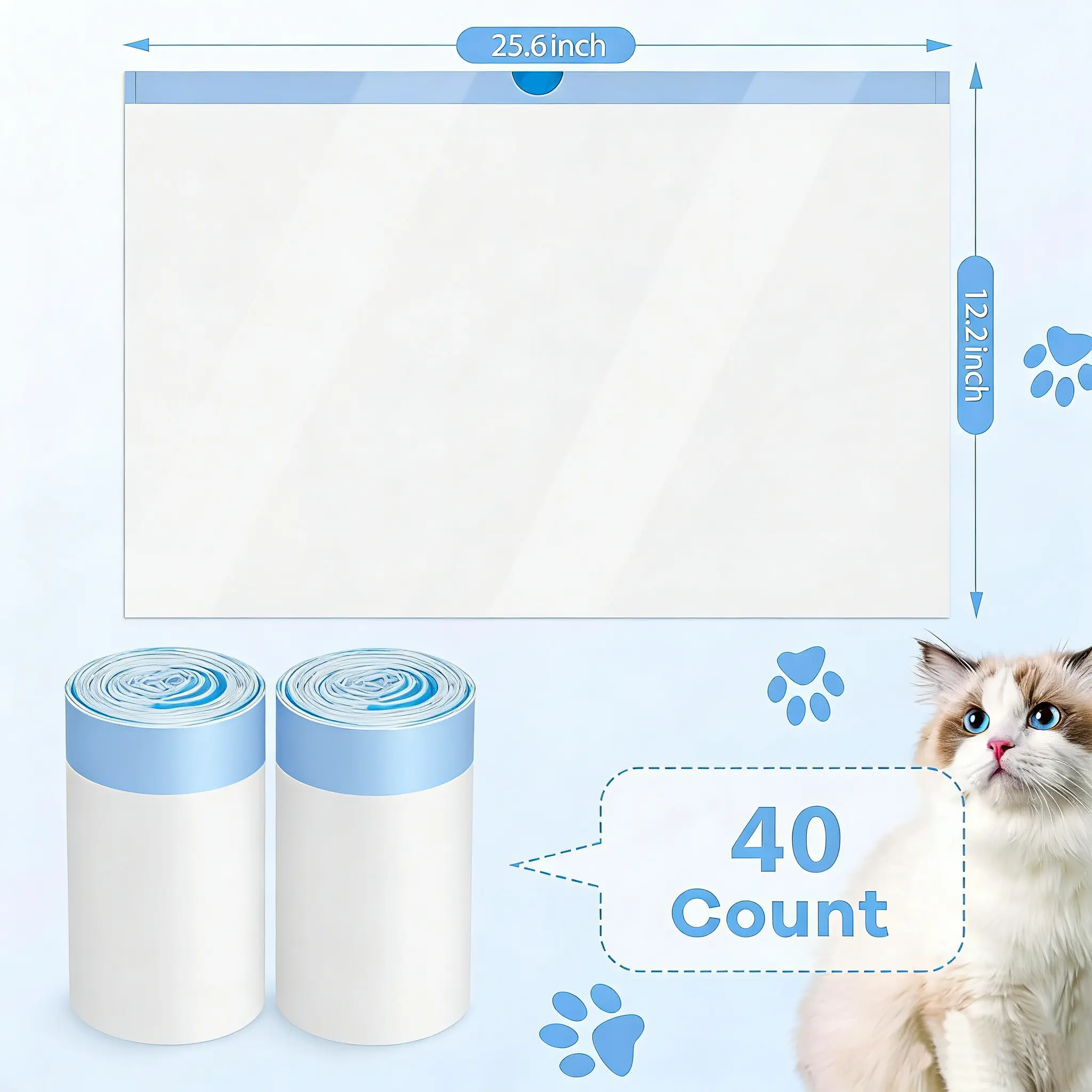 Cat Litter Bags - 40 Durable Drawstring Liners for Automatic Litter Boxes