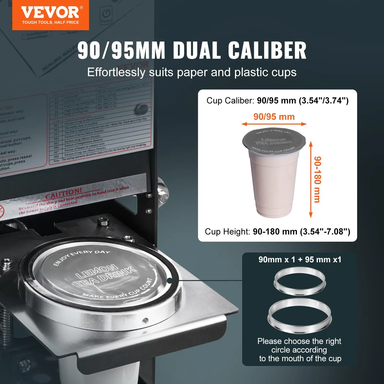 5. VEVOR Fully Automatic Cup Sealing Machine, 500-650 Cups/H, Cup Sealer Machine for 180 mm Tall & 90/95 mm Cup, Electric Tea Sealer with Digital Control LCD Panel for Bubble Milk Tea Coffee, Black