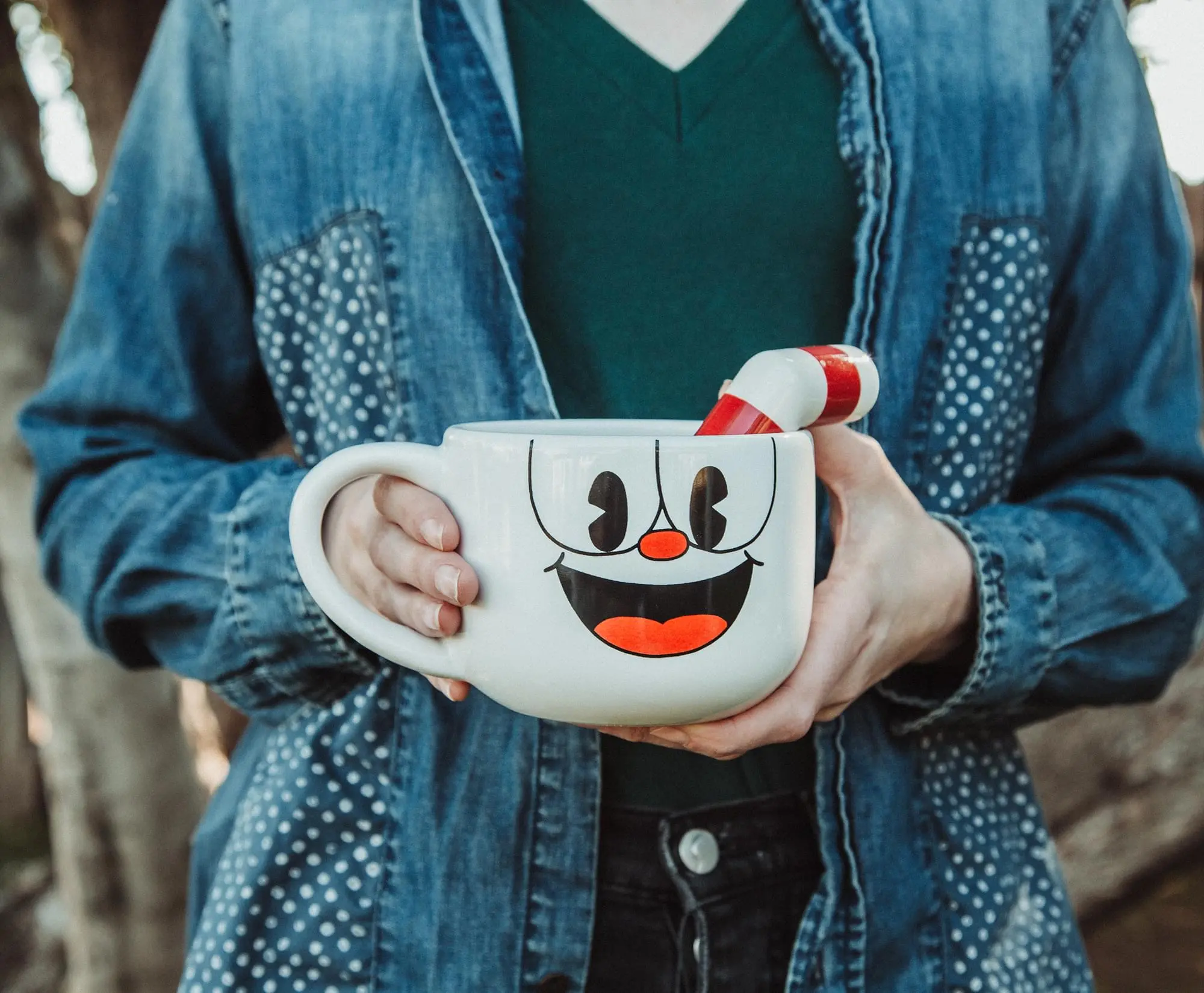 Cuphead Ceramic Coffee Mug and Straw | Holds 20 Ounces
