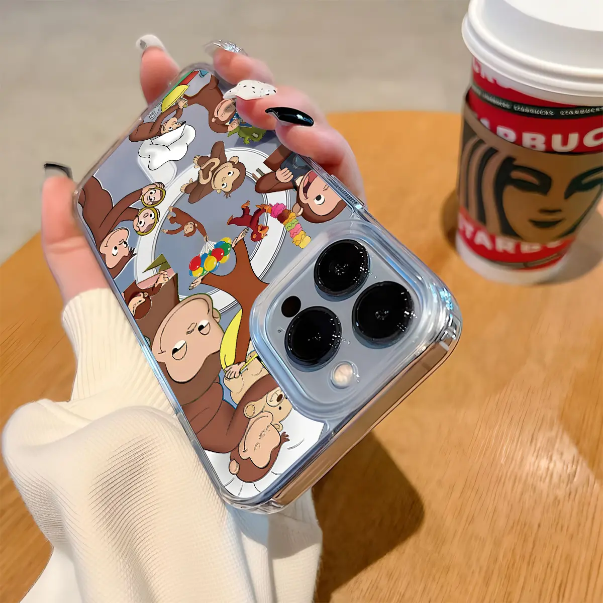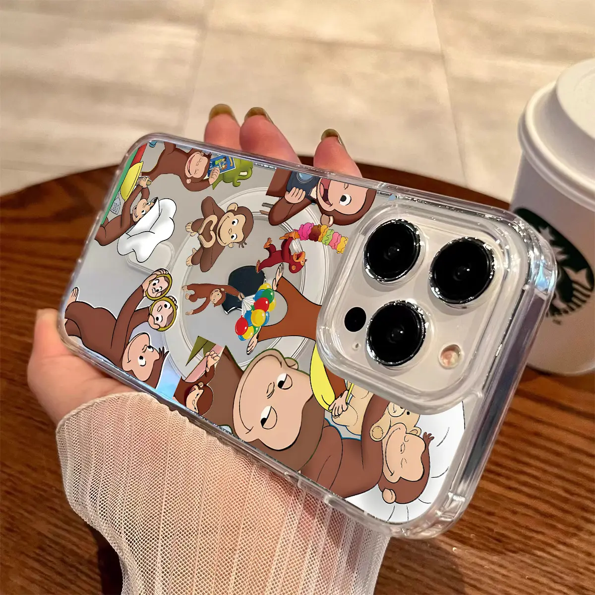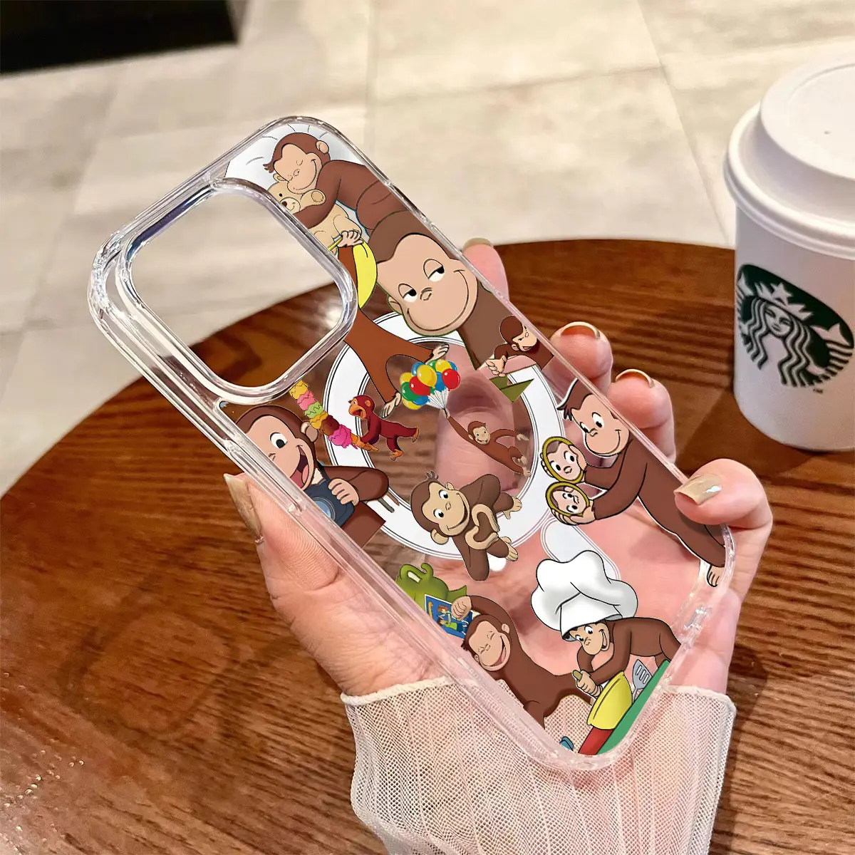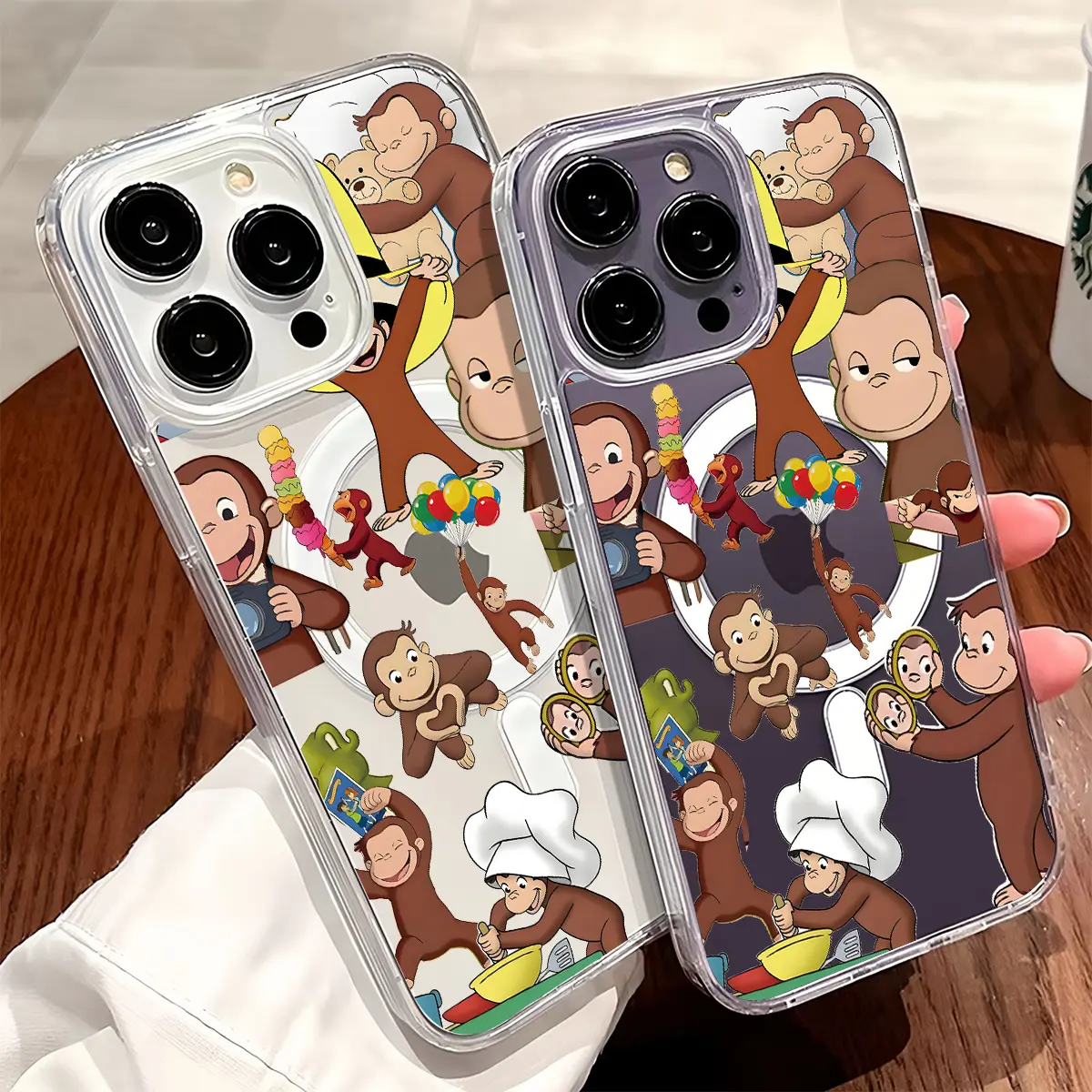 Curious George Monkey Design Clear Wireless Charging Protection Shockproof Slim Magnetic Phone Case For iPhone 17 16 15 Pro Max 14 13 12 11 Plus Air