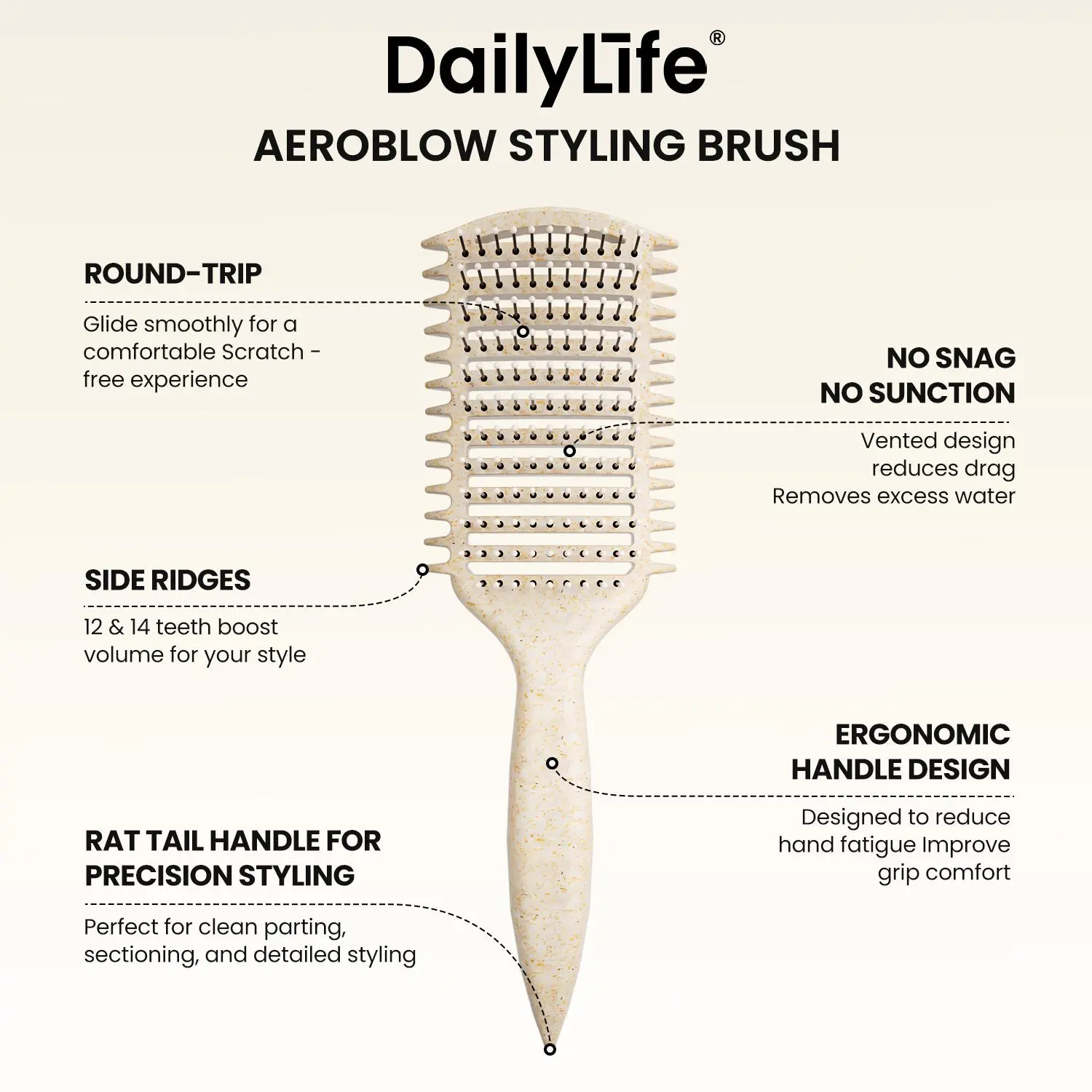 Curl Defining Brush for Women and Men Vented Design for Detangling and Shaping Curls Ergonomic Handle Gentle on Hair Beige Hairbrush