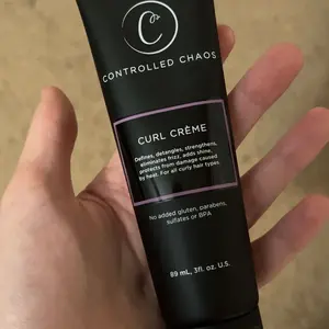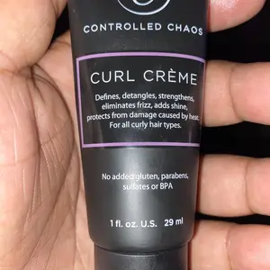 Controlled Chaos Curl Defining Cream enhances natural curl patterns, adding smoothness and taming frizz. It ensures soft, bouncy curls without crunch. Perfect for curly, wavy, and coily hair. Available in sizes: 3oz, 5 oz and 32 oz.