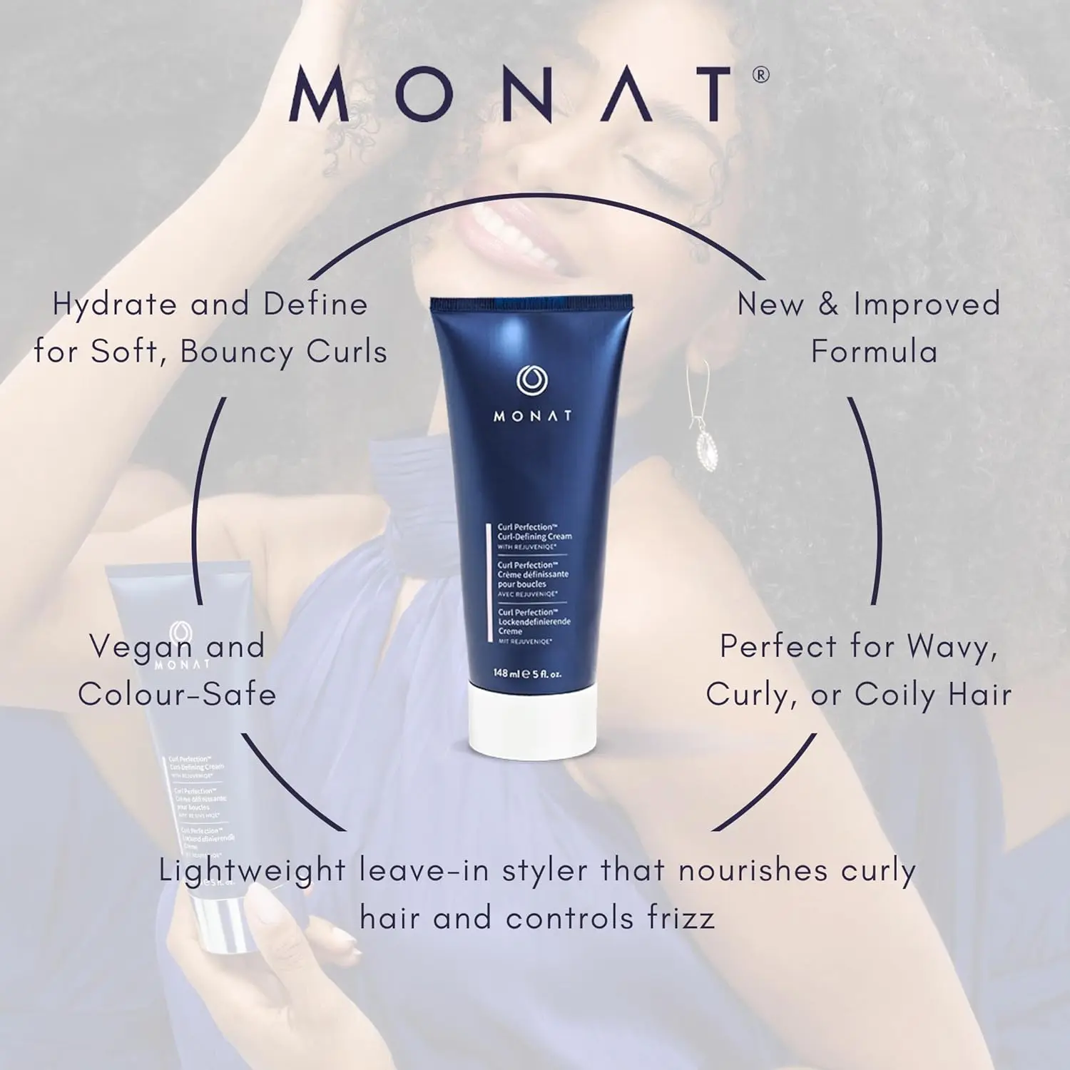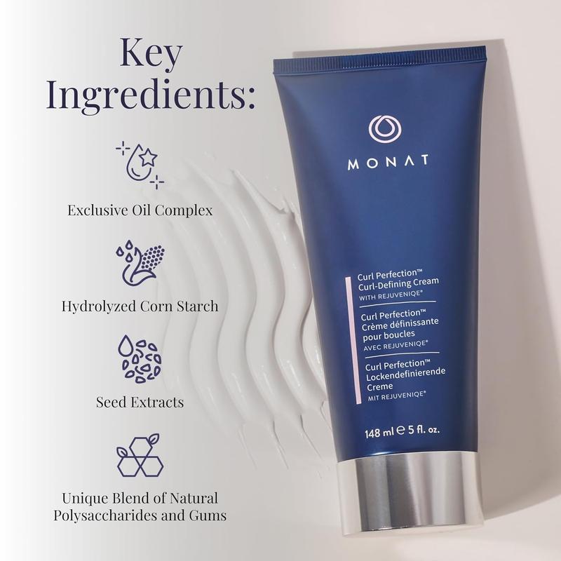·CURL-DEFINING & FRIZZ-FIGHTING CREAM: MONAT Curl Perfection️ Curl-Defining Cream is your go-to leave-in styling solution for wavy, curly, or frizzy hair. This lightweight formula hydrates and defines curls, leaving them soft, bouncy, and manageable for longer, with all-day frizz control.