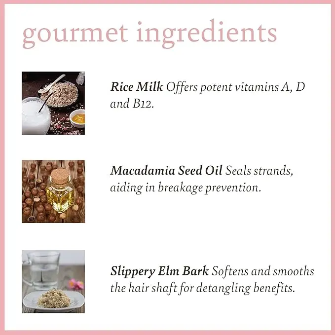 ·Made With:Rice MilkMacadamia OilAvocado OilRice Bran OilCastor OilSafe for All Hair TypesContains No Parabens or Phthalates